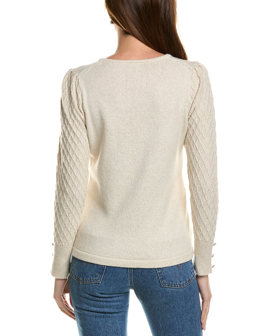 Anne Klein womens Puff Sleeve Sweater, l, White Size L MSRP $79