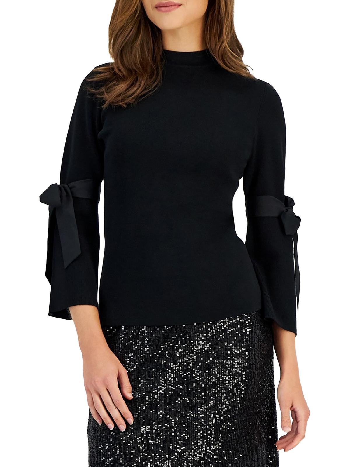 Anne Klein Womens Ribbed Knit Pullover Sweater Size S Black MSRP $89