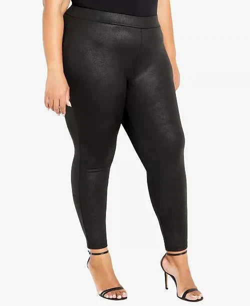 AVENUE Nina Faux Leather Pants Size 18 Gunmetal Black MSRP $69