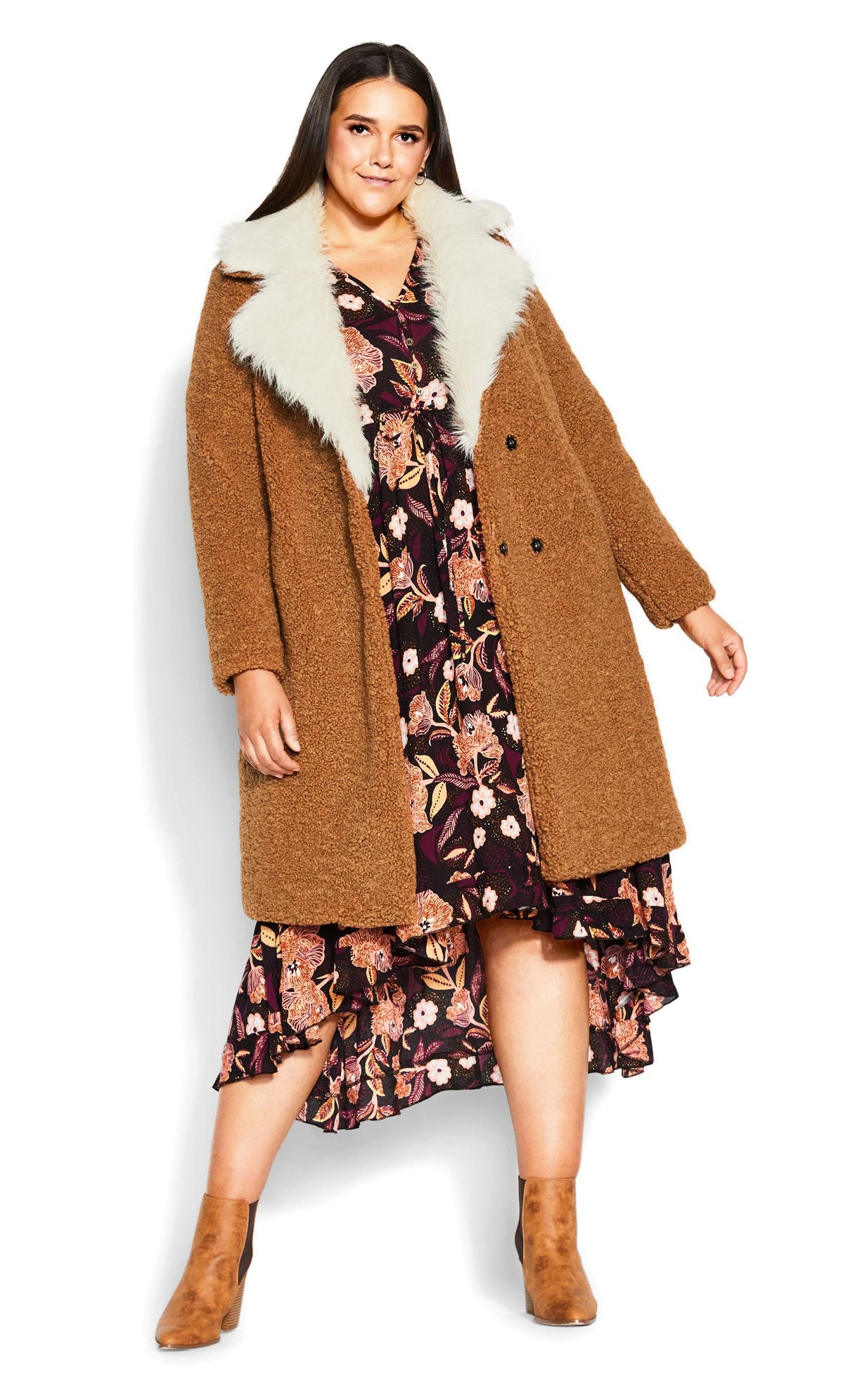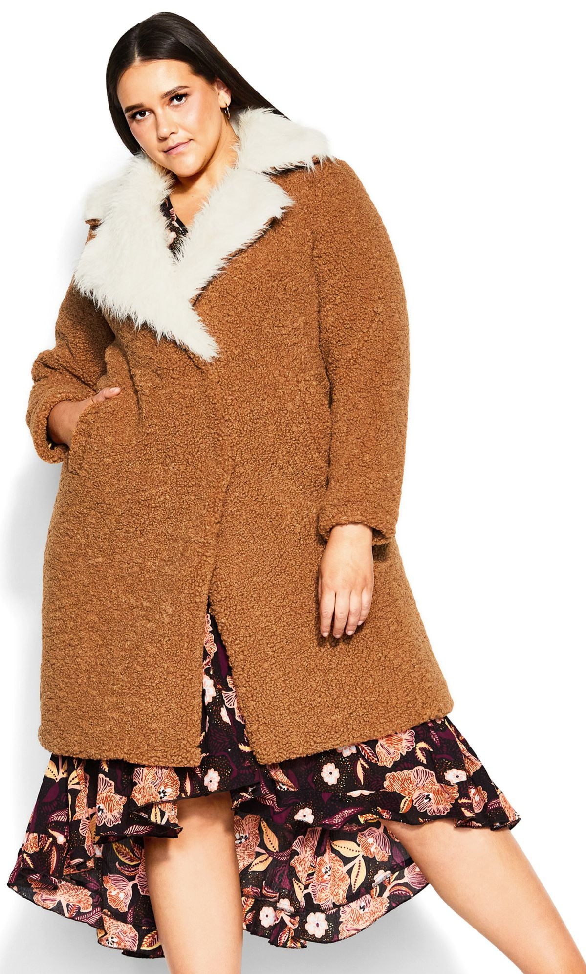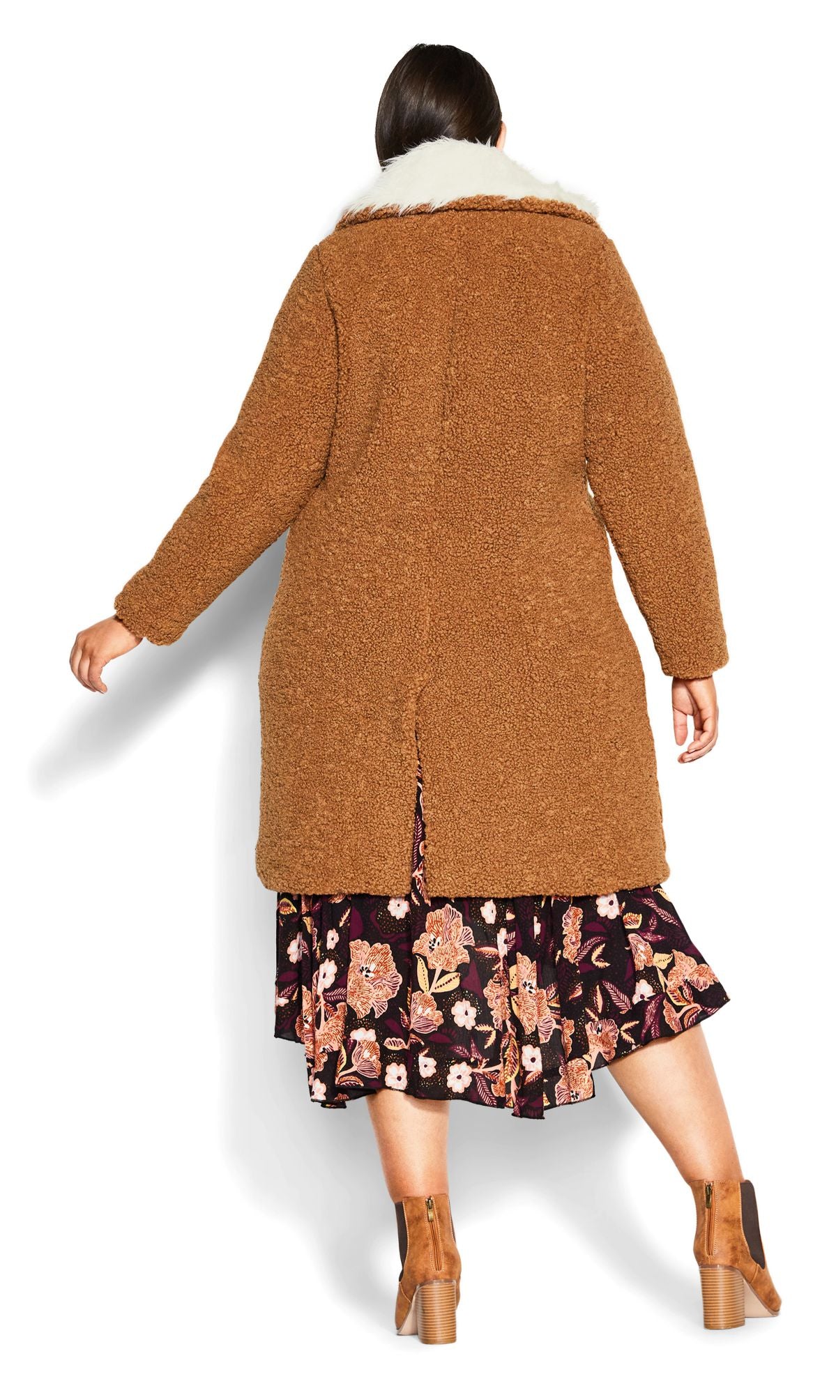 Up your outerwear style with the cozy look of our Teddy Faux Fur Jacket. From the faux fur collar to the knee-length hemline and convenient front pockets, there's a lot to love about this piece of outerwear. Key Features Include: - Faux fur collar - Front pockets - Full-length sleeves - Fully lined - Teddy jacket design - Knee-length hemline Wear it open over jeans, a knit top, and ankle boots for a laidback, everyday look.