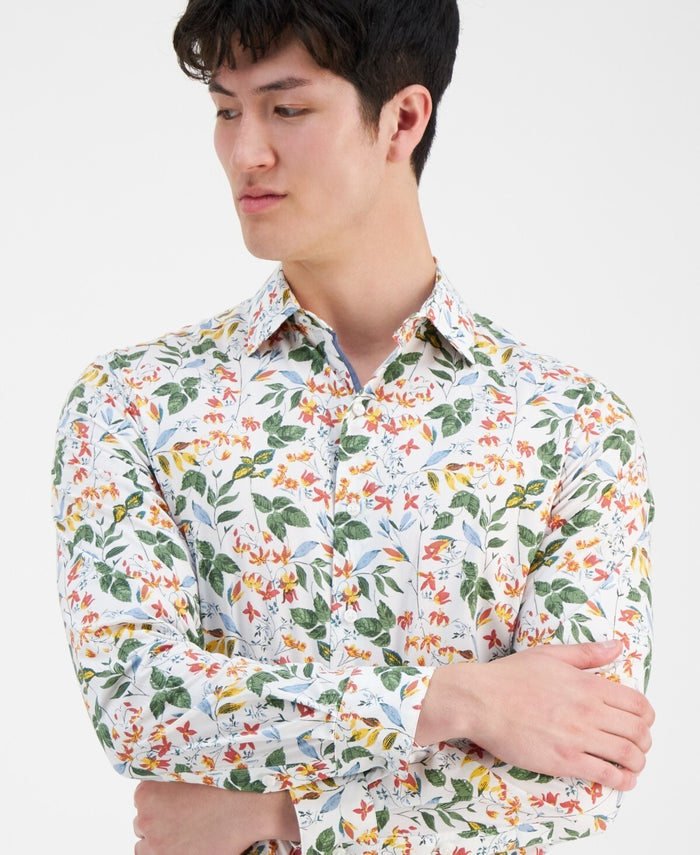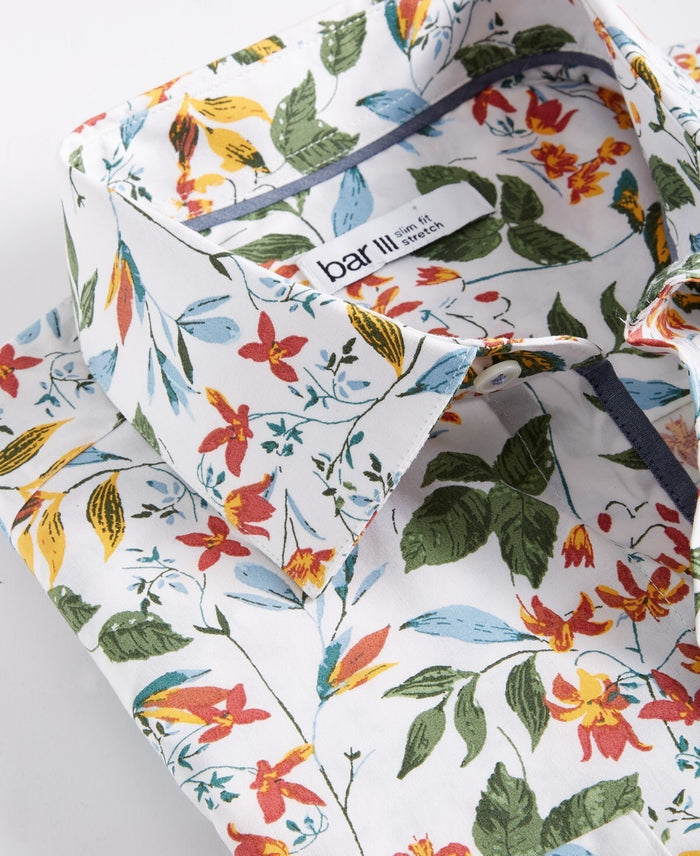 Energize your dress look with this Bar III shirt, in a slim, contemporary silhouette with a bold and vibrant ivy print.