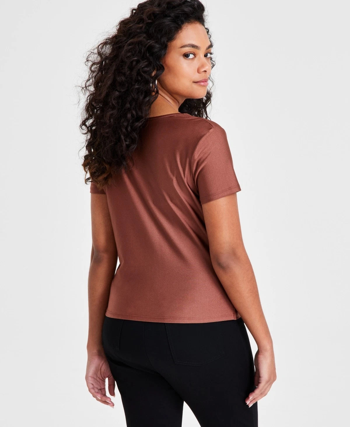 Bar III Women's Brown Short-Sleeve Cowlneck Top Petite Size PXS