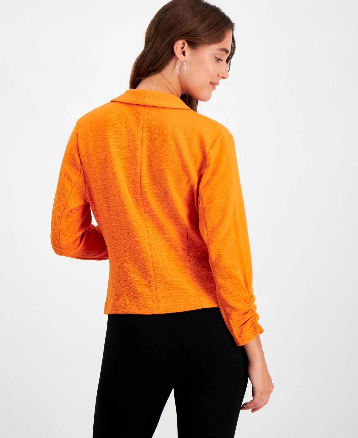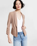 Bar III adds a sophisticated touch to your look with a ruched-sleeve petite blazer. Shawl lapels make the perfect finishing touch.