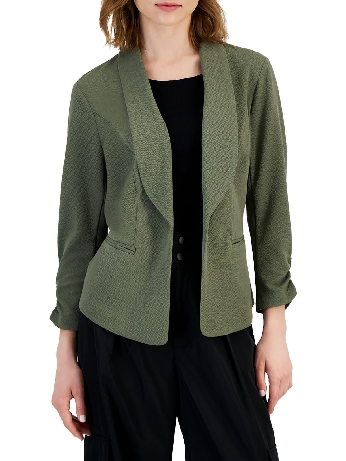 Bar III Womens Petites Ruched Open-Front Blazer Size PP Green Olive