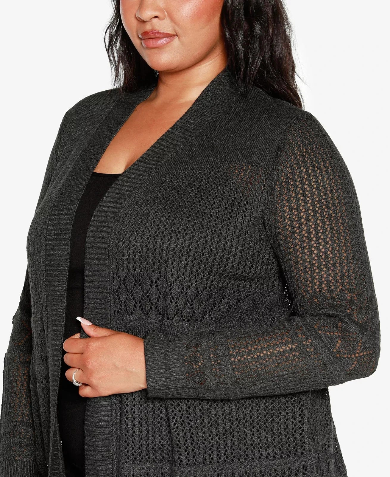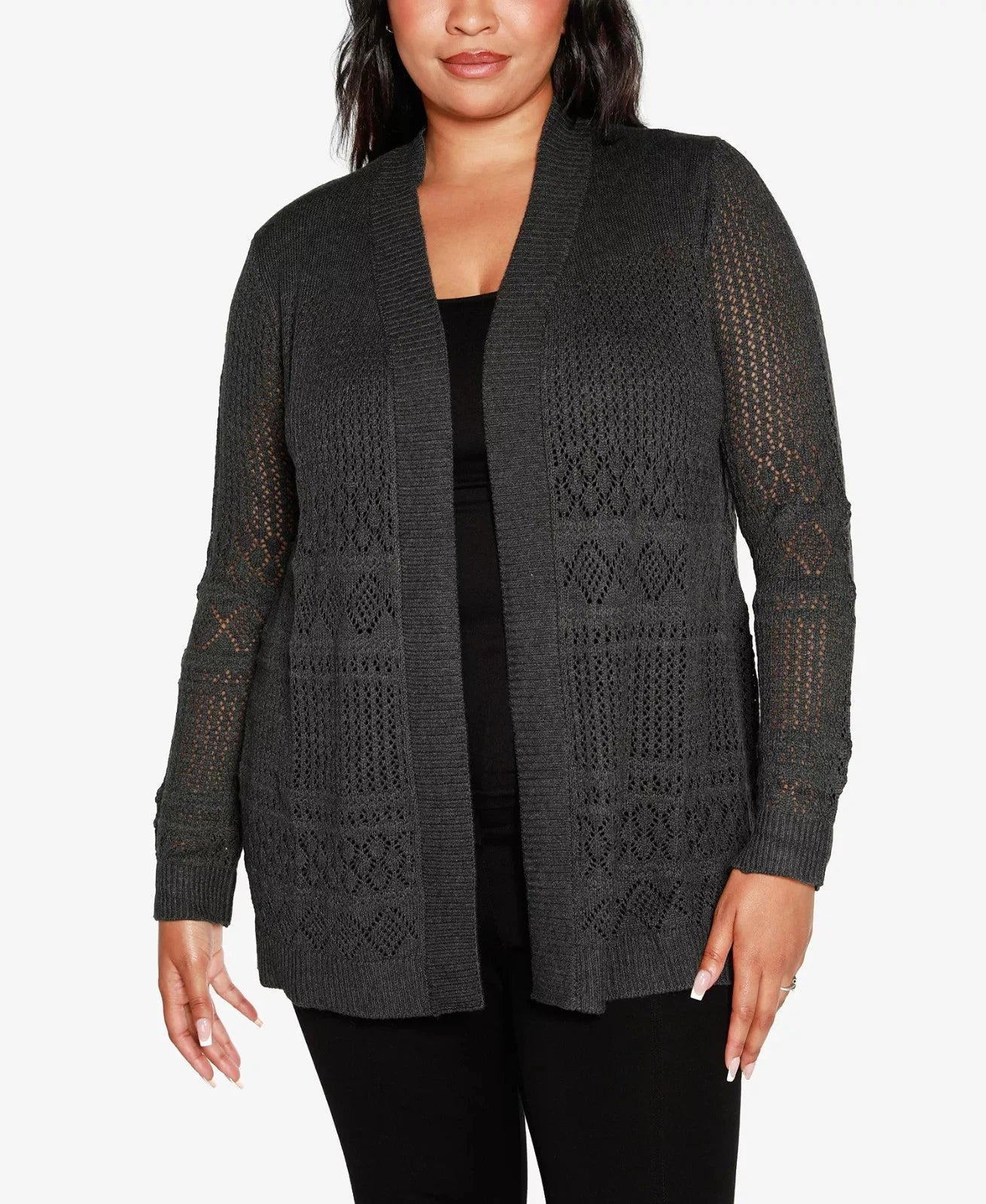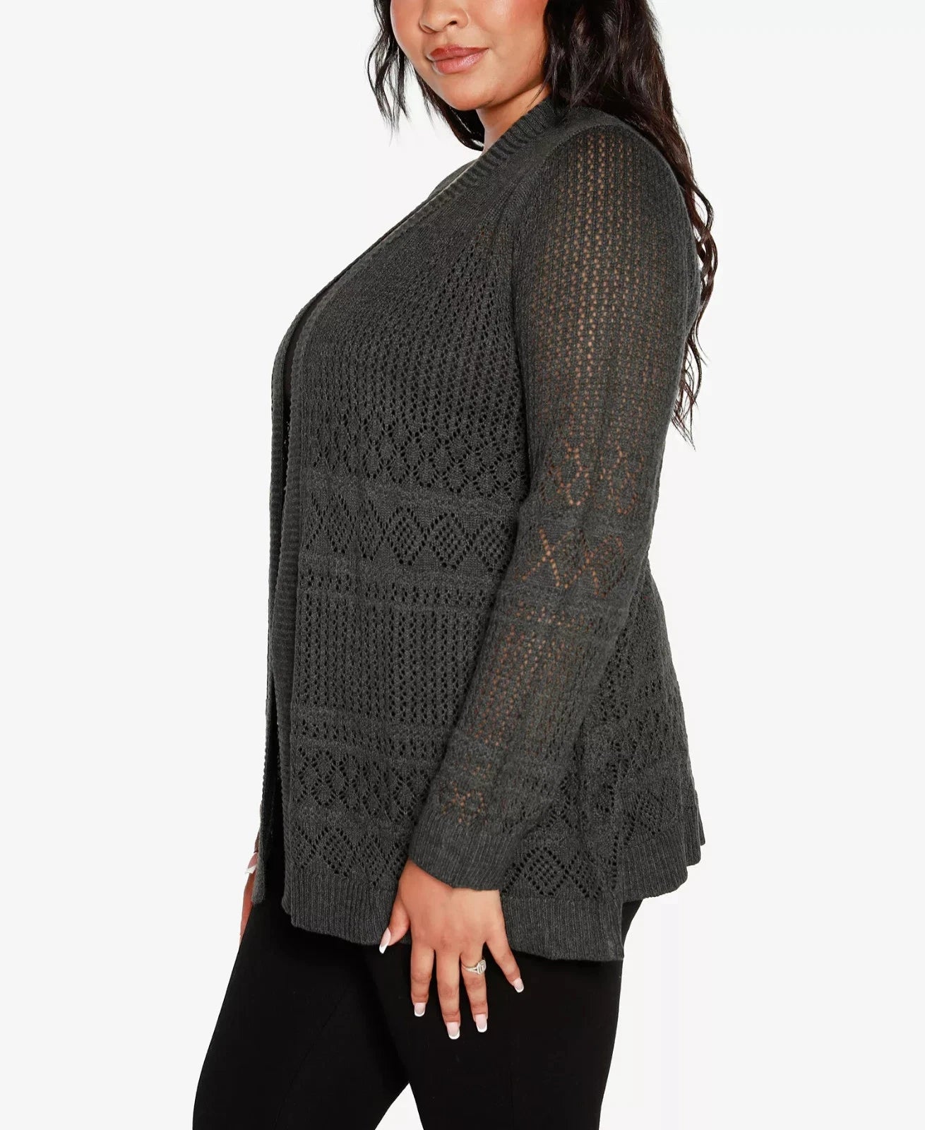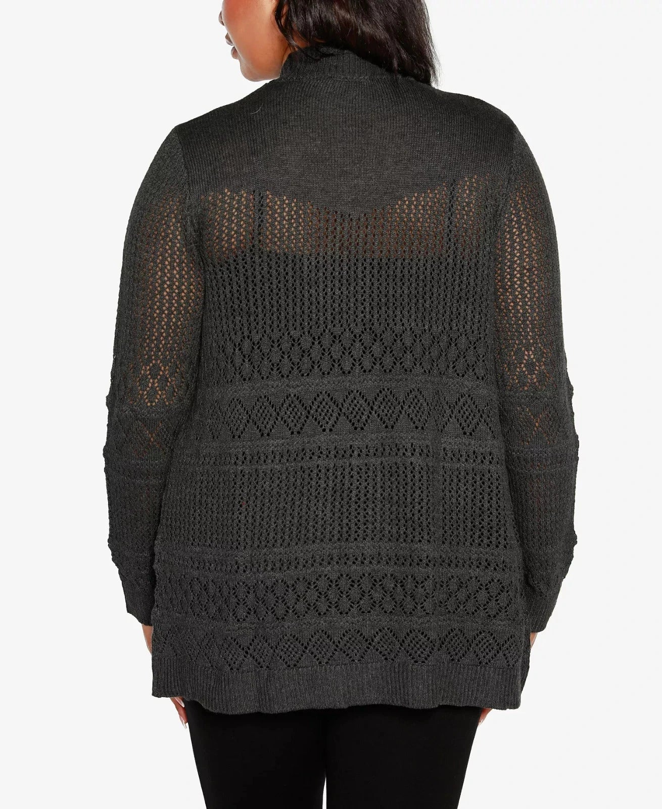 Belldini Plus Size 1X Pointelle Open Cardigan Sweater Gray MSRP $64