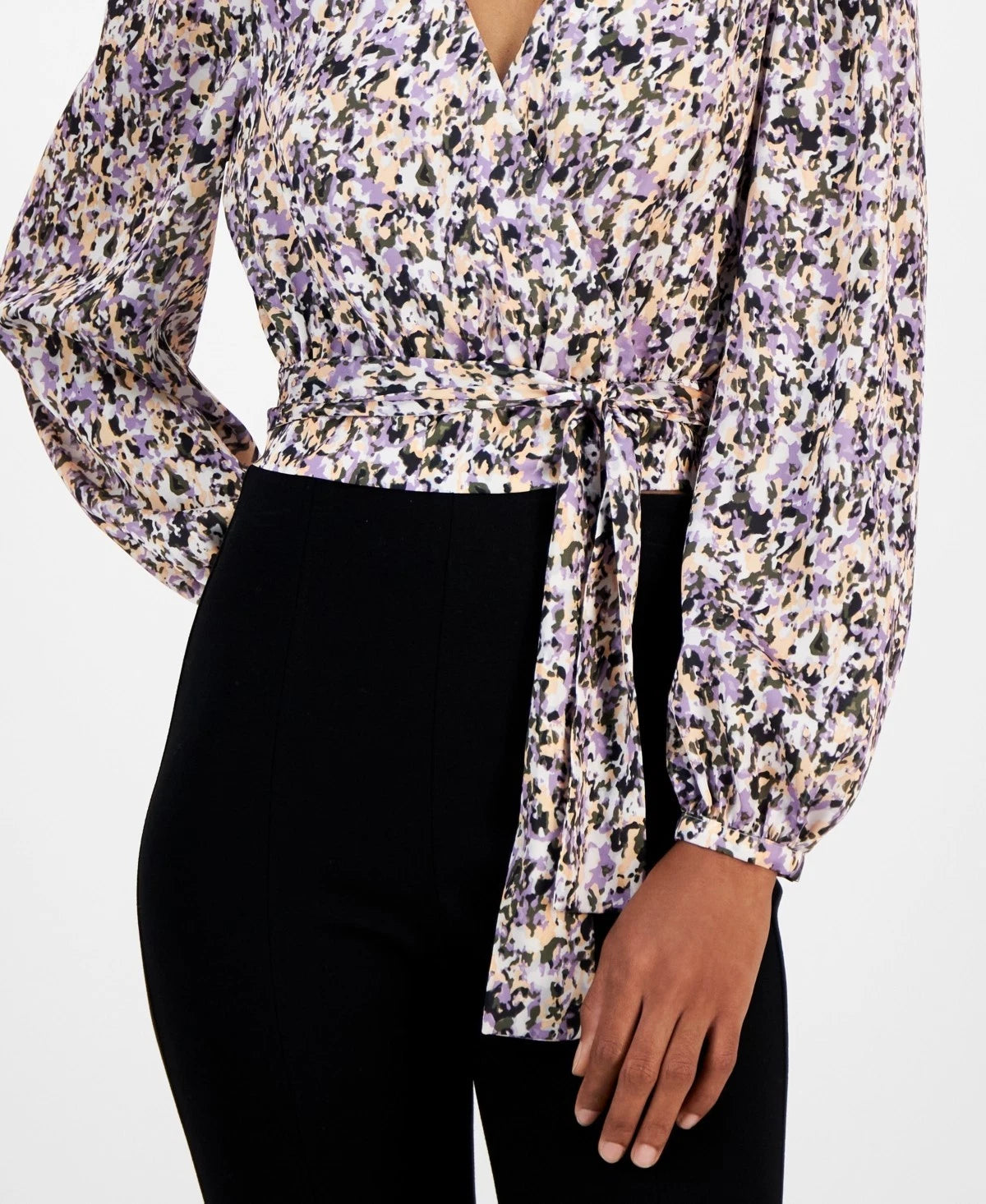 BOSS Orange Women's Banella Abstract-Print Tie-Hem Top Size XL Purple MSRP $148
