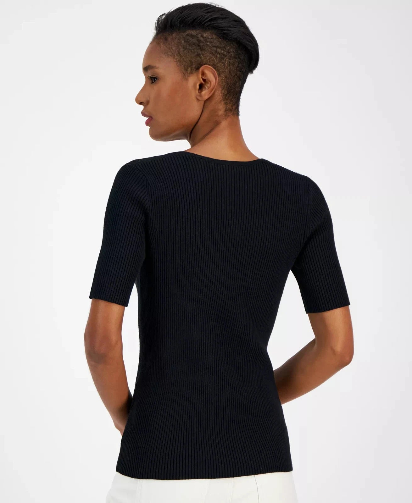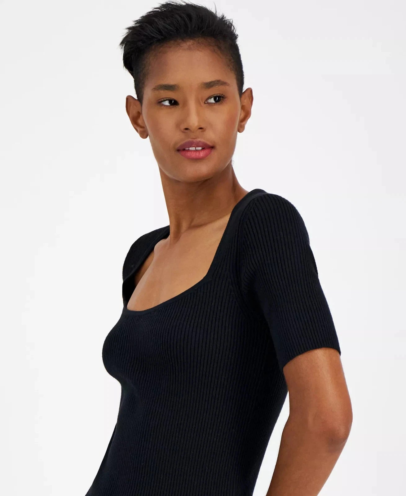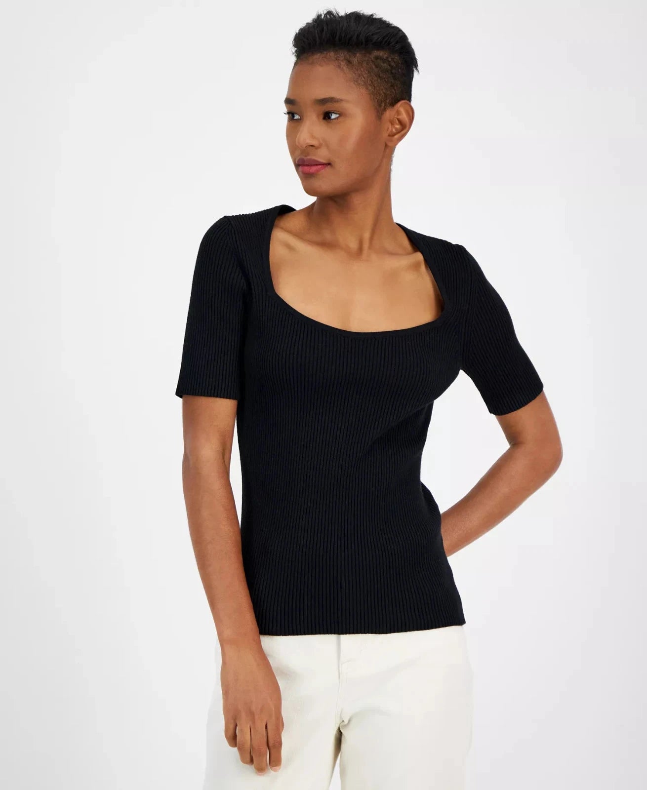 HUGO BOSS Orange Women's Faggio Ribbed Sweetheart-Neck Top Black Size XS MSRP $148