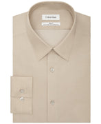 The Calvin Klein Steel dress shirt is engineered for performance. High-tech wrinkle-free stretch fabric requires less ironing, while wicking properties pull away moisture for cool, dry comfort. A regular fit delivers a classic look that defines refinement.