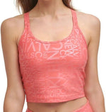 Sliced logos lend a playful vibe to the front of this cropped active T-shirt from Calvin Klein Performance.