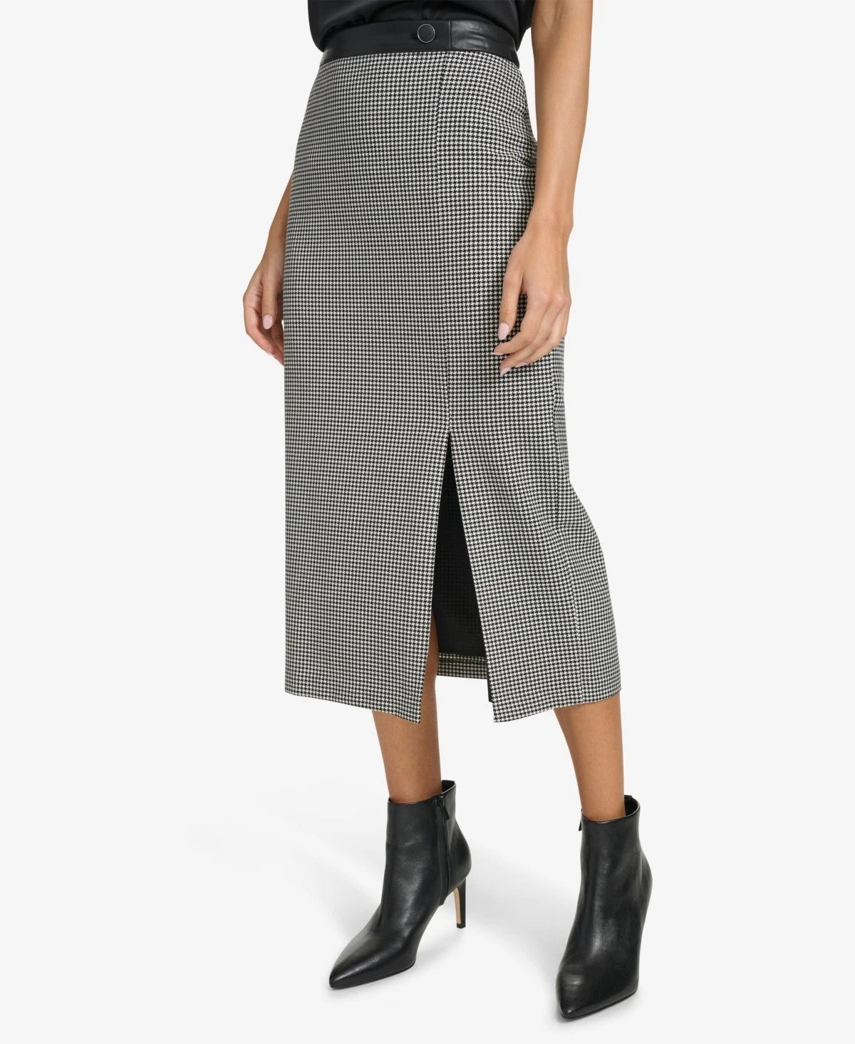 Calvin Klein Petite Faux-Leather-Trim Midi Pencil Skirt Black Size 12P MSRP $109