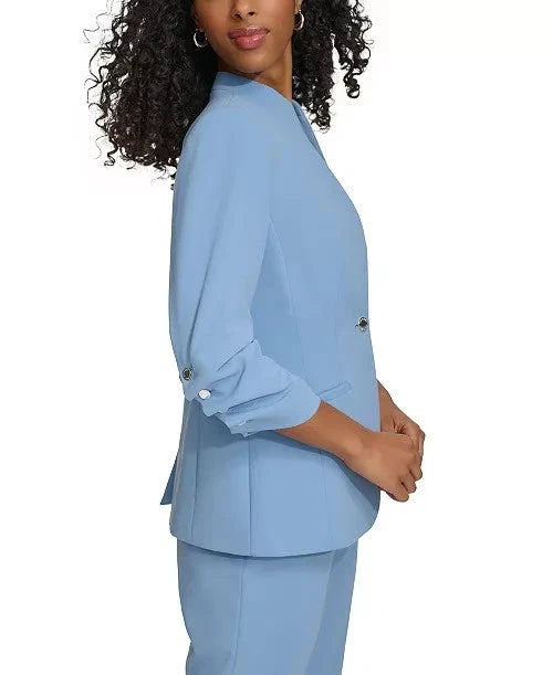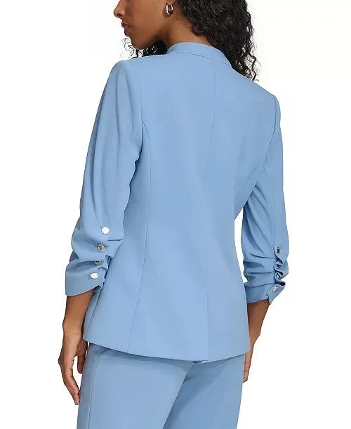 Calvin Klein Petite Ruched-Sleeve Single-Button Jacket Blue Size 2P MSRP $149