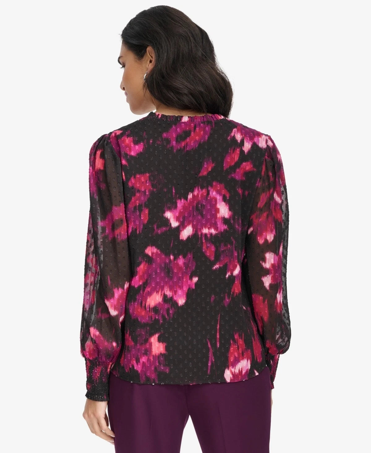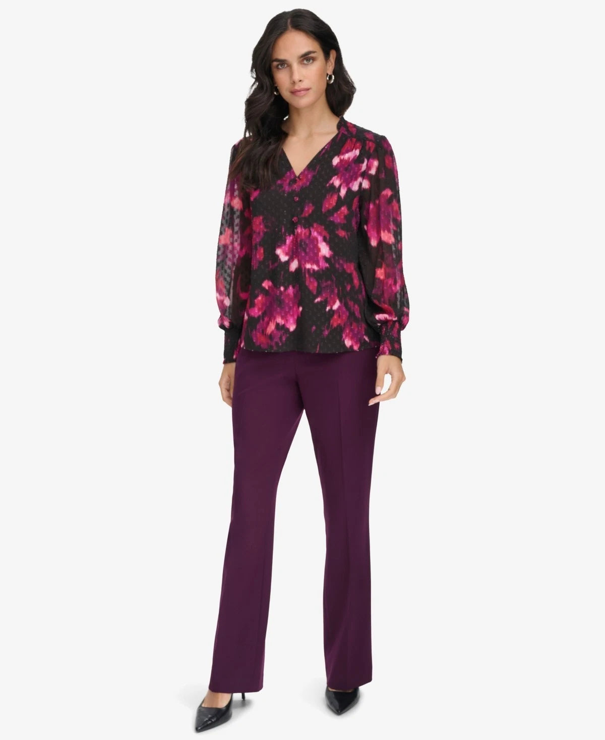 Bring a touch of elegance to your work wardrobe with this women's printed clip dot blouse from Calvin Klein.