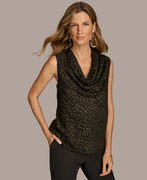 Calvin Klein Women s Printed V-Neck Long-Sleeve Blouse Black Size L MSRP $89