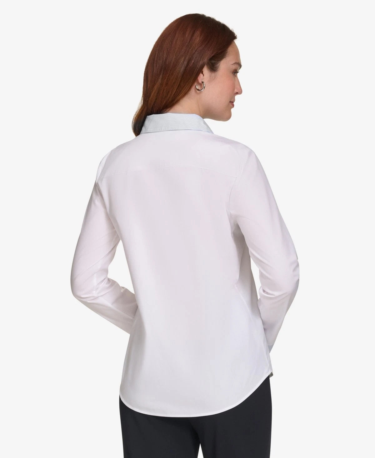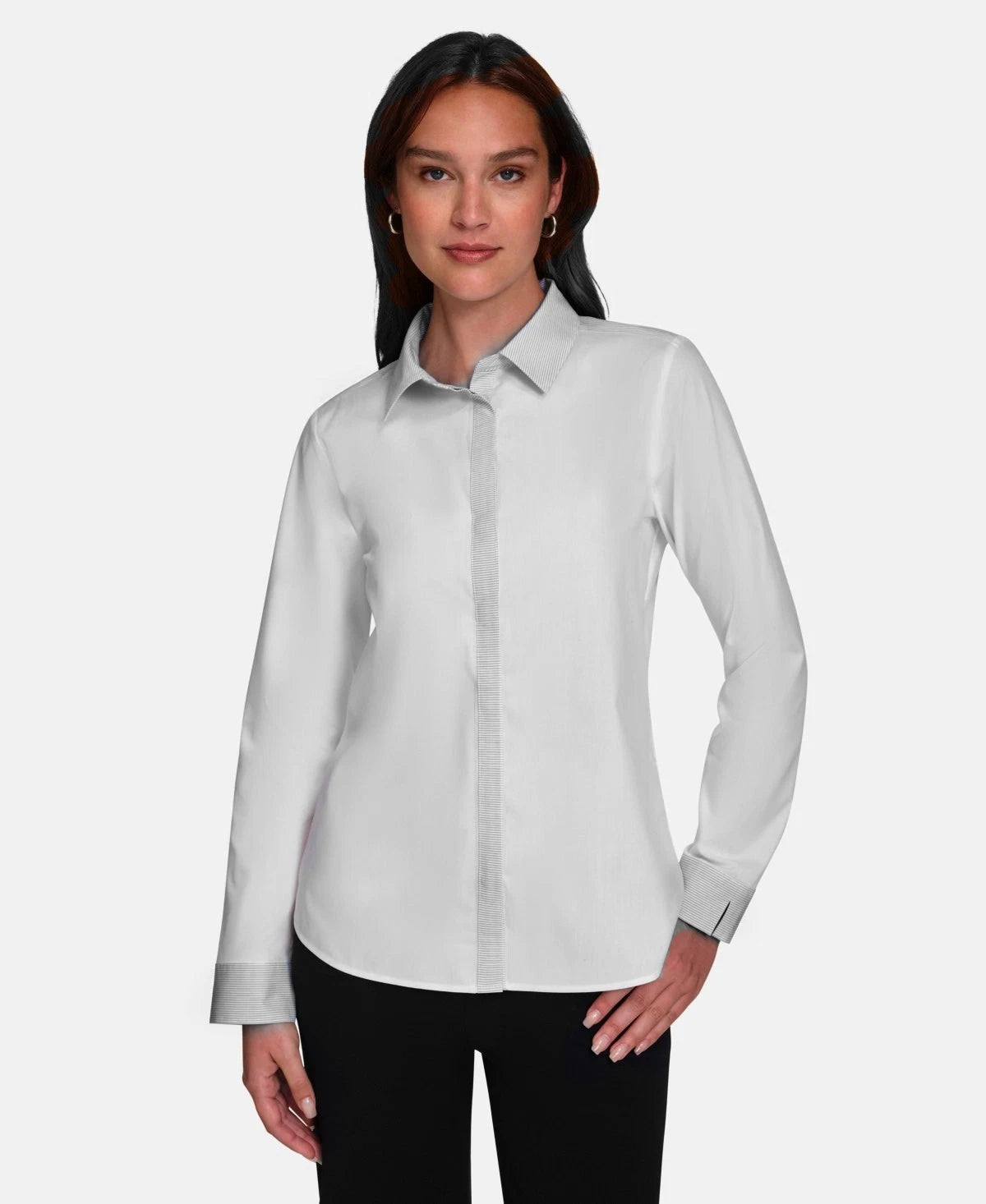 Calvin Klein Women's Cotton Striped-Edge Blouse White Size XL MSRP $99