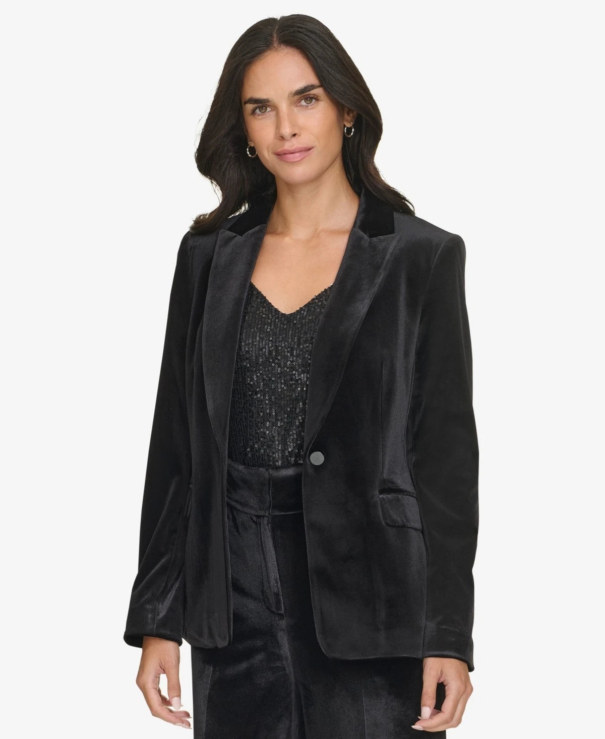 Add a festive touch to your wardrobe with this chic velvet blazer from Calvin Klein.