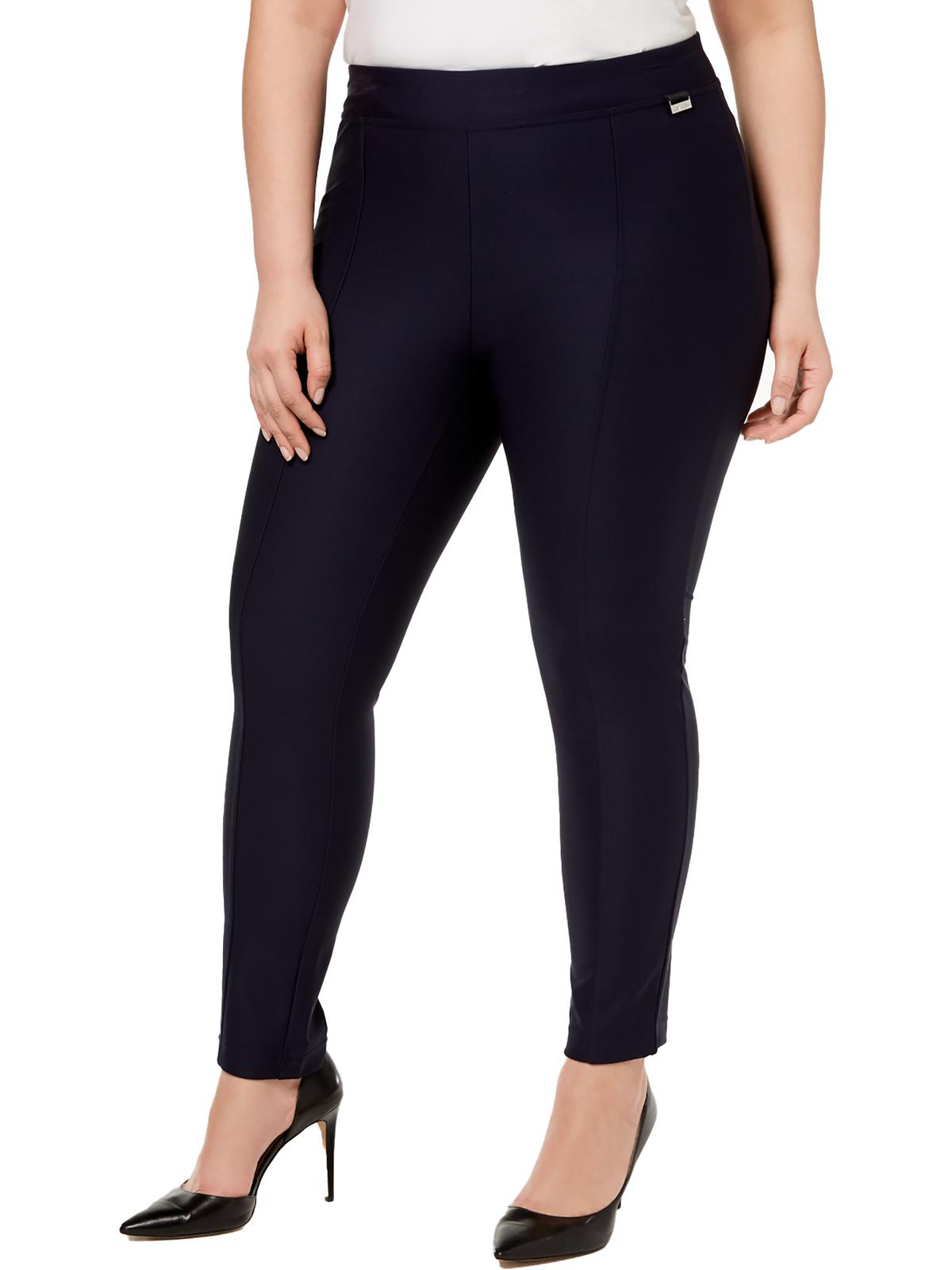 Calvin Klein Womens Plus High Rise Logo Skinny Pants Black Size 1X MSRP $70