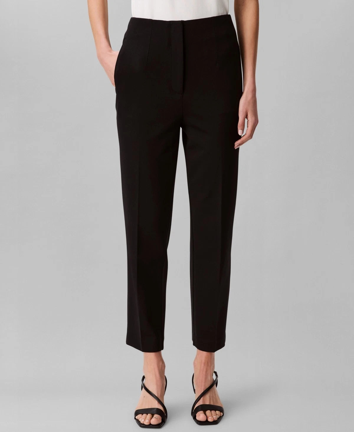 Styled with a straight leg silhouette and comfortable high rise, these Calvin Klein ponte pants are darted at the front for a tailored fit that makes them ideal for any office outfit.