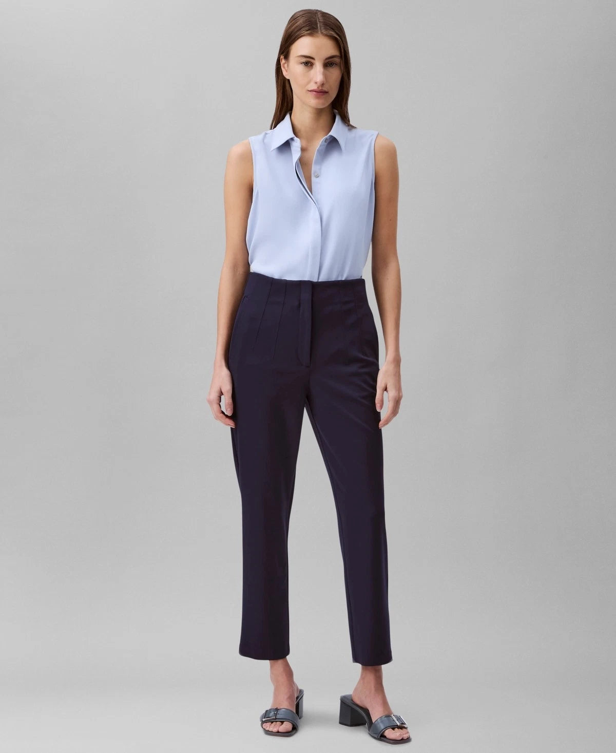 Styled with a straight leg silhouette and comfortable high rise, these Calvin Klein ponte pants are darted at the front for a tailored fit that makes them ideal for any office outfit.