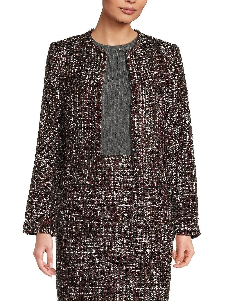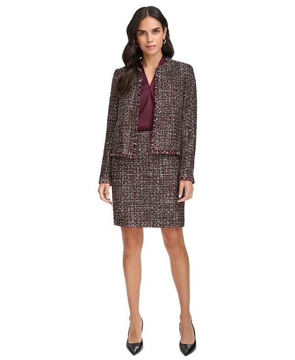 Calvin Klein Women's Tweed Open-Front Blazer Black Burgundy Size 10 MSRP $159