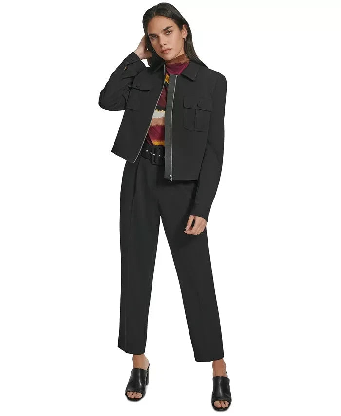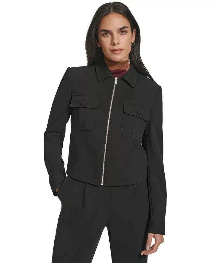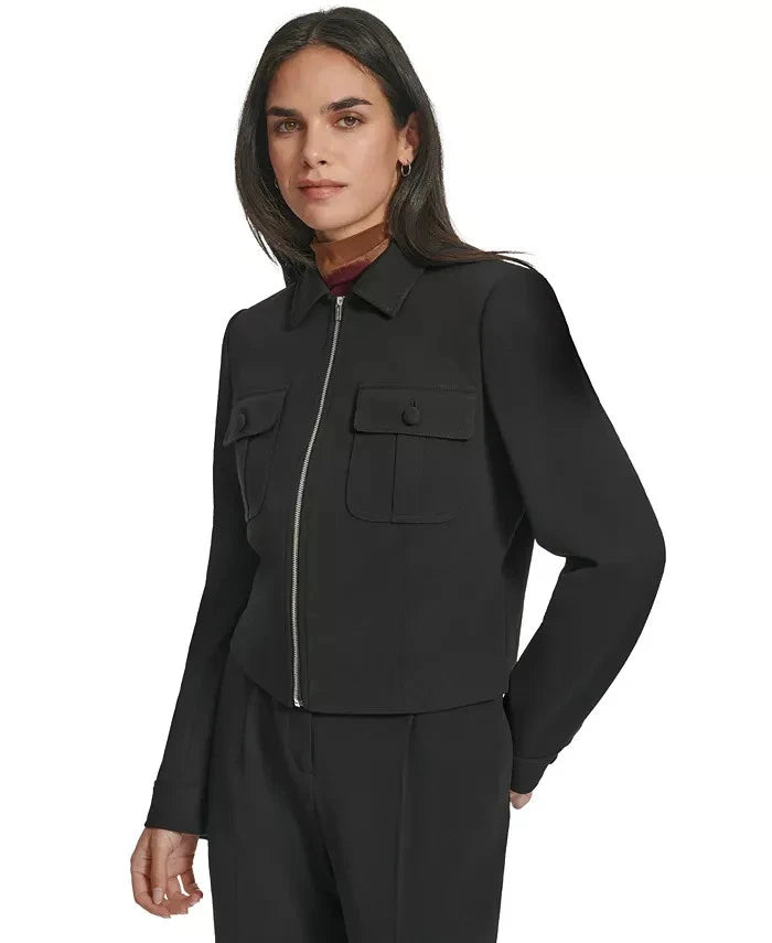 Calvin Klein Womens Zip-Front Collared Jacket Black Size 10 MSRP $159
