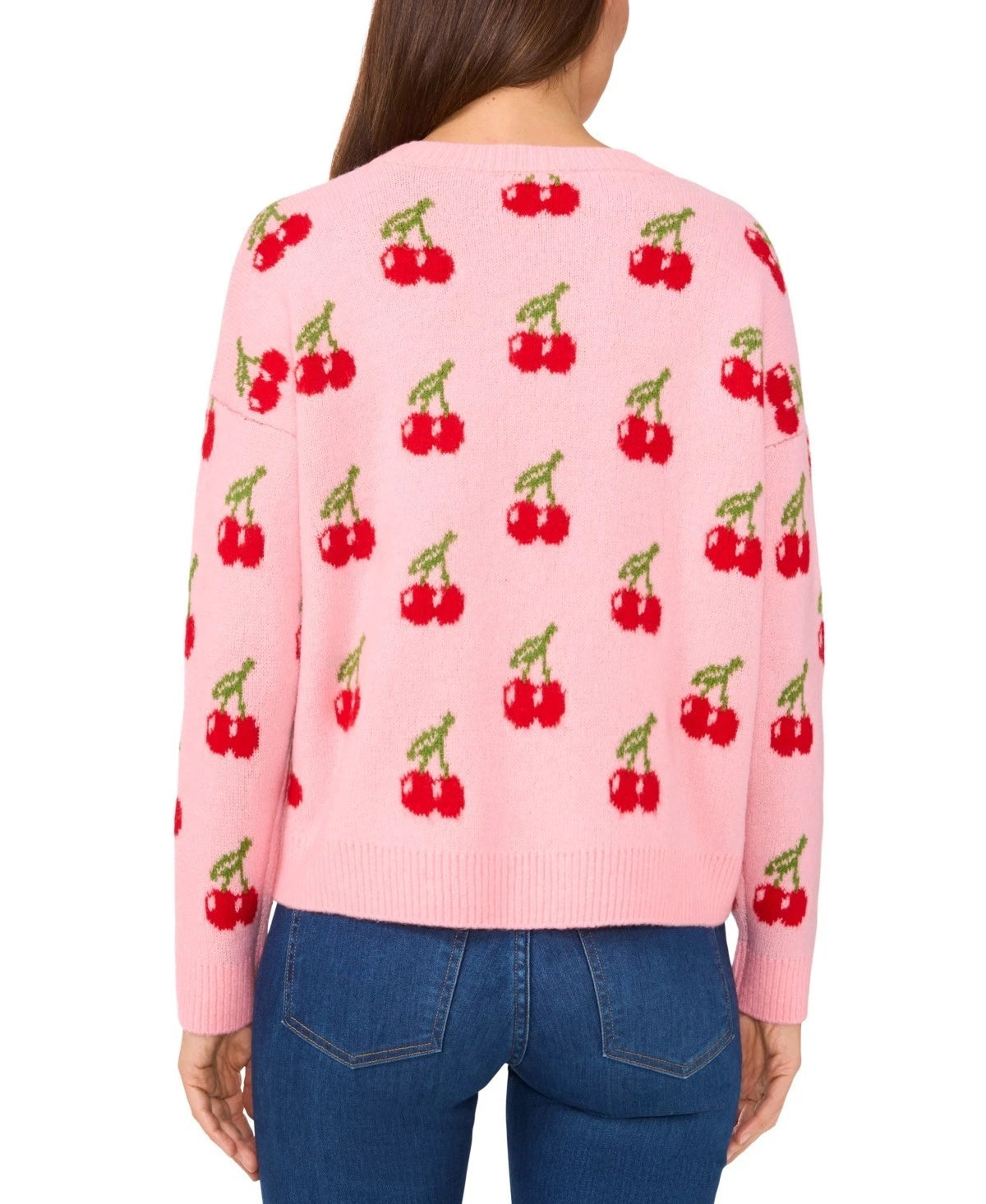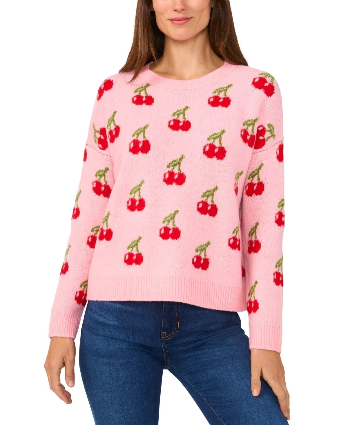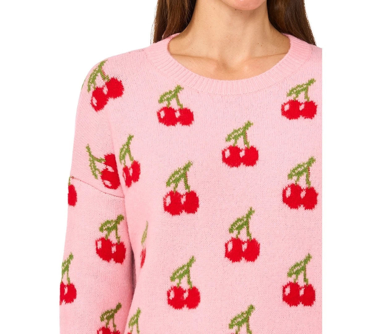 Cherries bring a little magic and whimsy to this cozy crewneck sweater from CeCe. ABOUT THE BRAND: CeCe is a contemporary lifestyle brand inspired by a romantic take on the everyday, punctuated by taste, wit, and on-the-go flair.