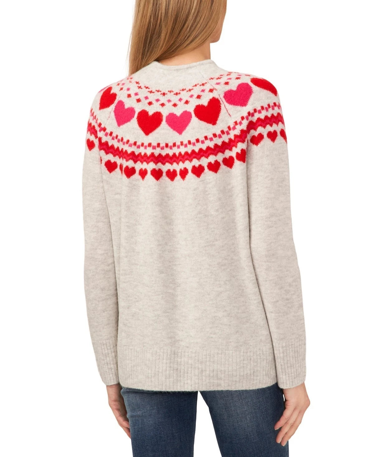 CeCe Women's Heart Fair Isle Mock Neck Long-Sleeve Sweater Gray Size XS