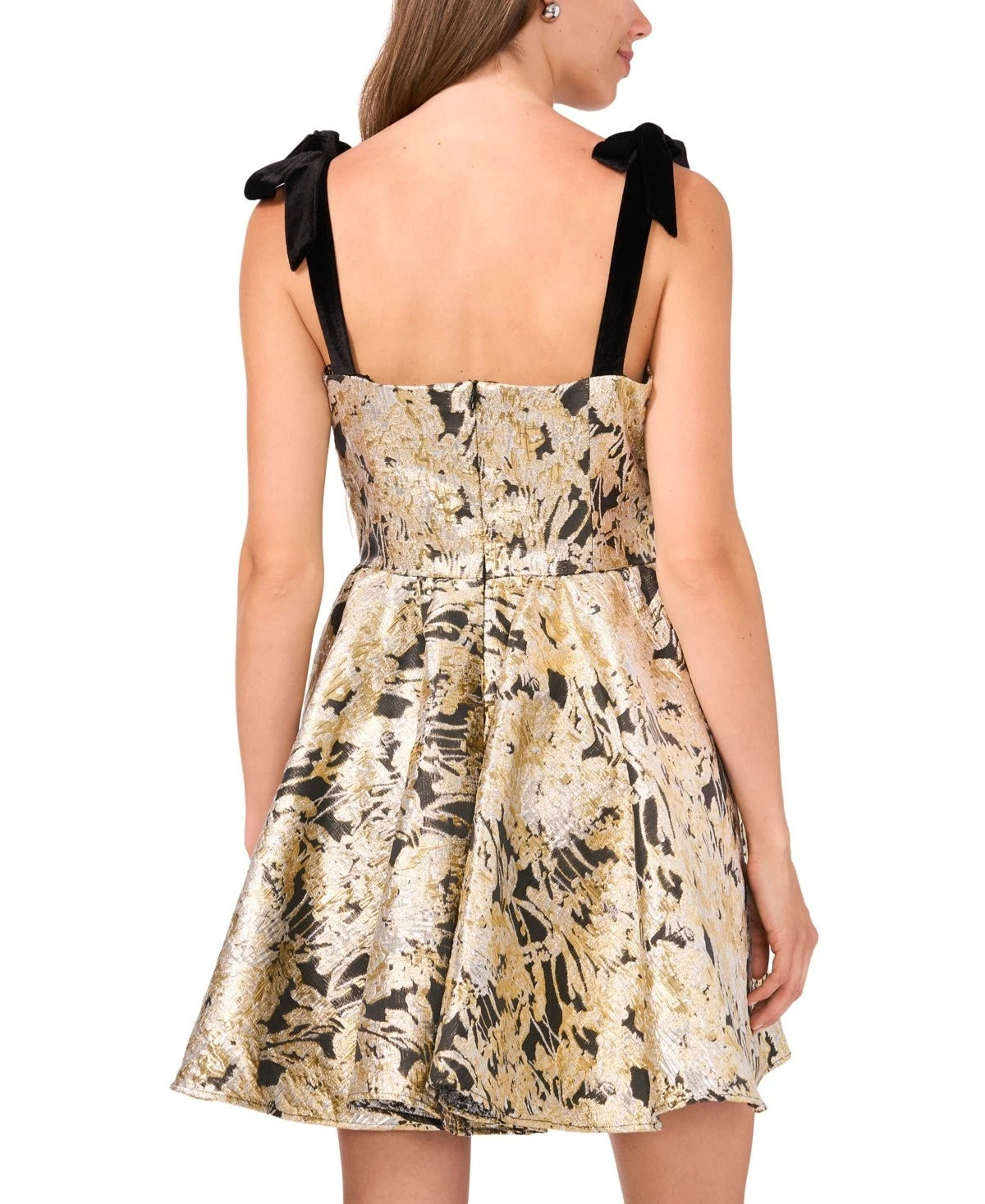CeCe Women's Printed Jacquard Shoulder-Tie Babydoll Dress Gold Size 2 MSRP $169