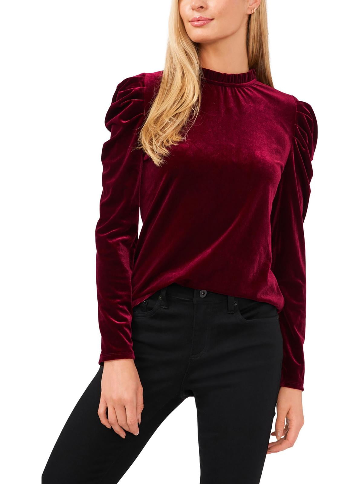 CeCe womens Shirred Cap Top, Size L, Red MSRP $69