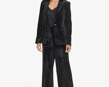 Design details: solid knit velvet, pleated at front and back sleeves