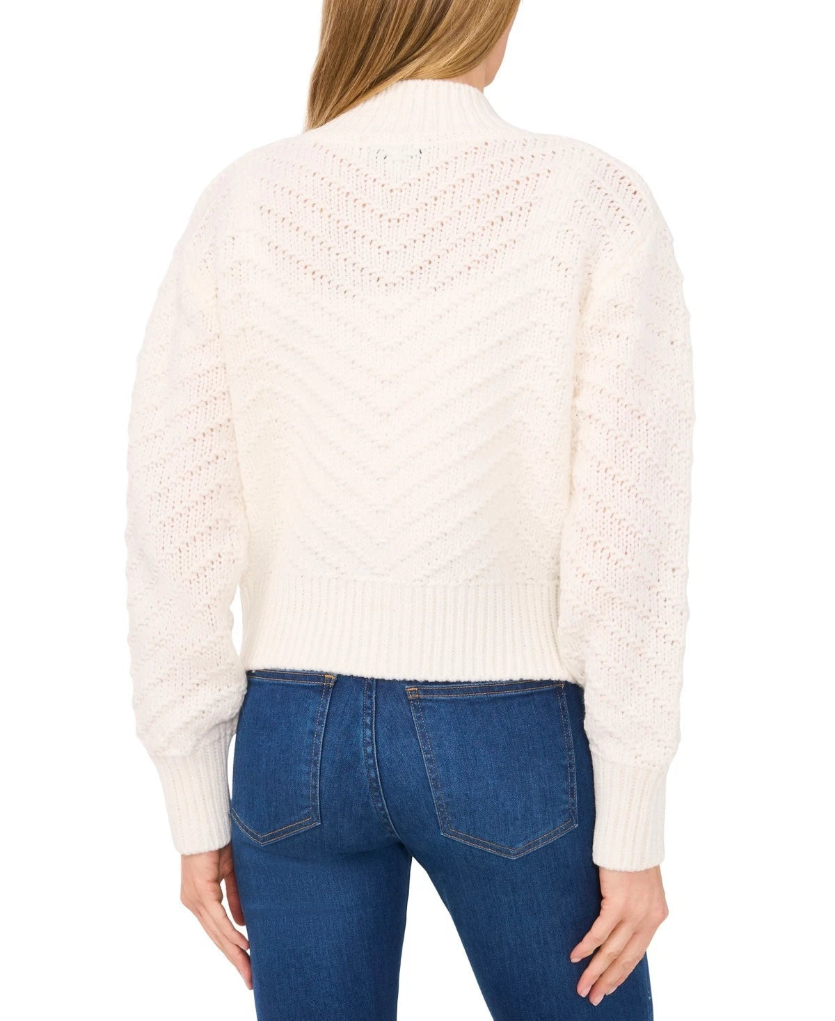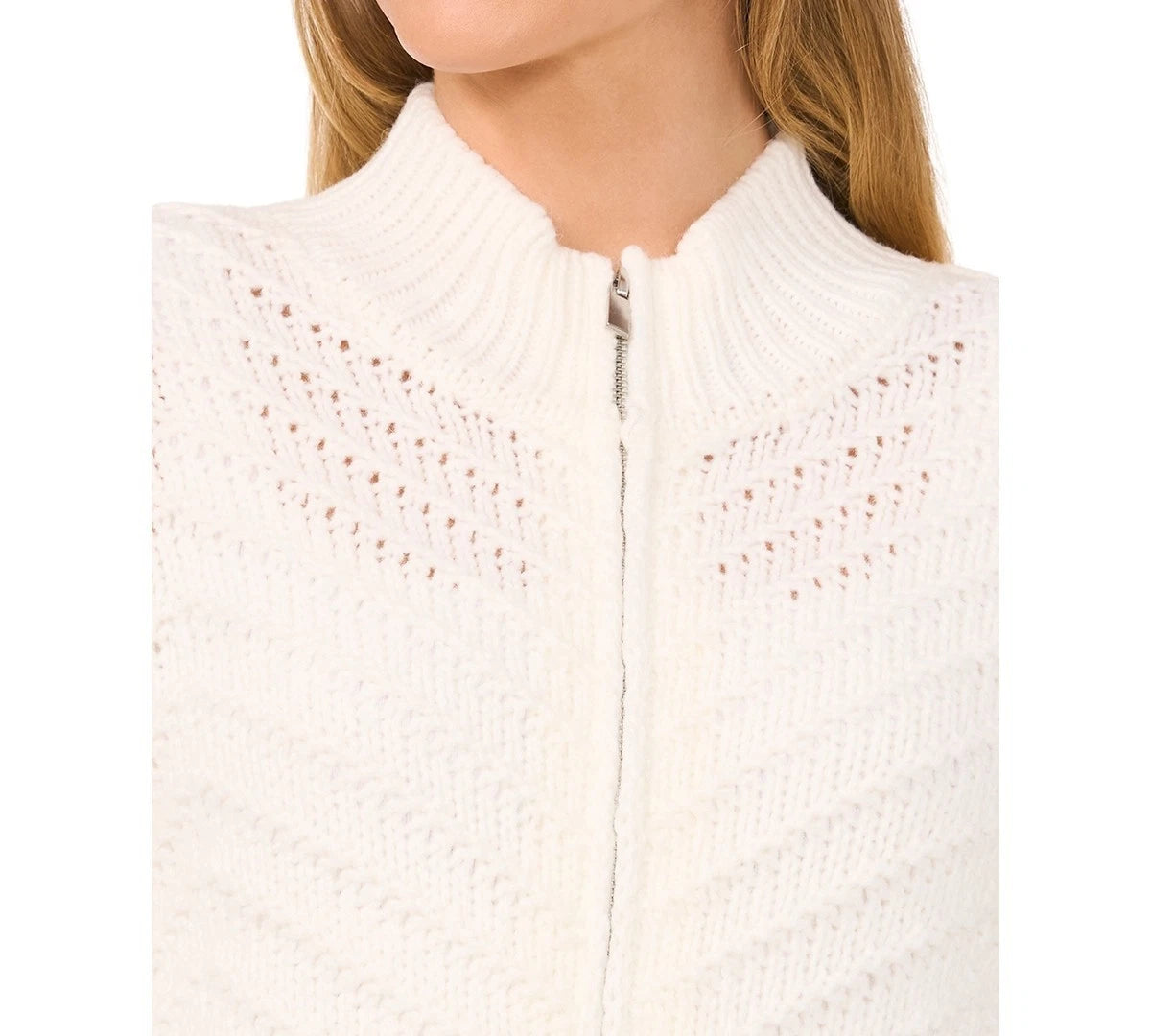 CeCe Women's Textured Zip-Up Cardigan White Size L MSRP $99