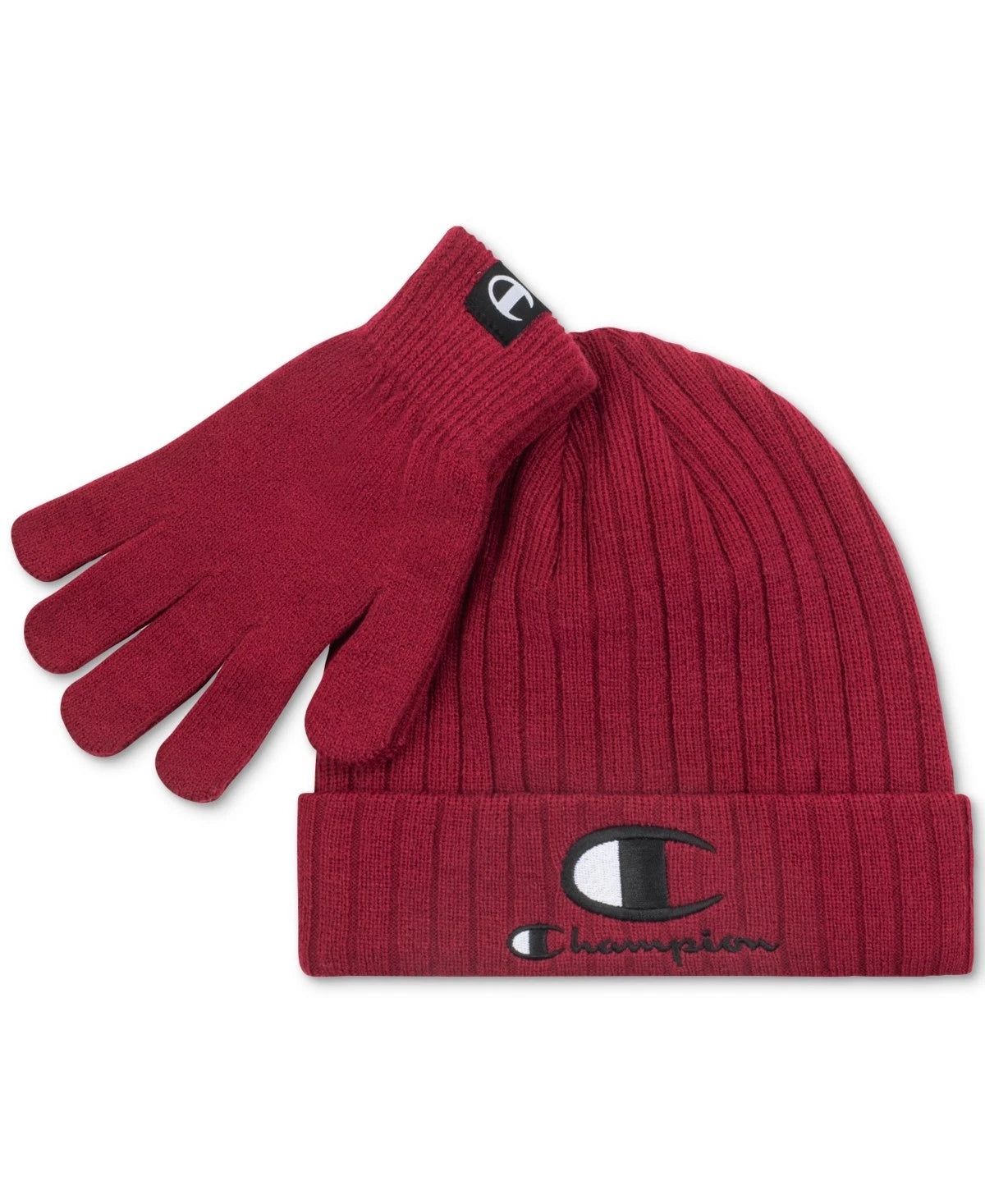 Coordinate your cold-weather look with this set from Champion, a cozy cuffed beanie and matching gloves.