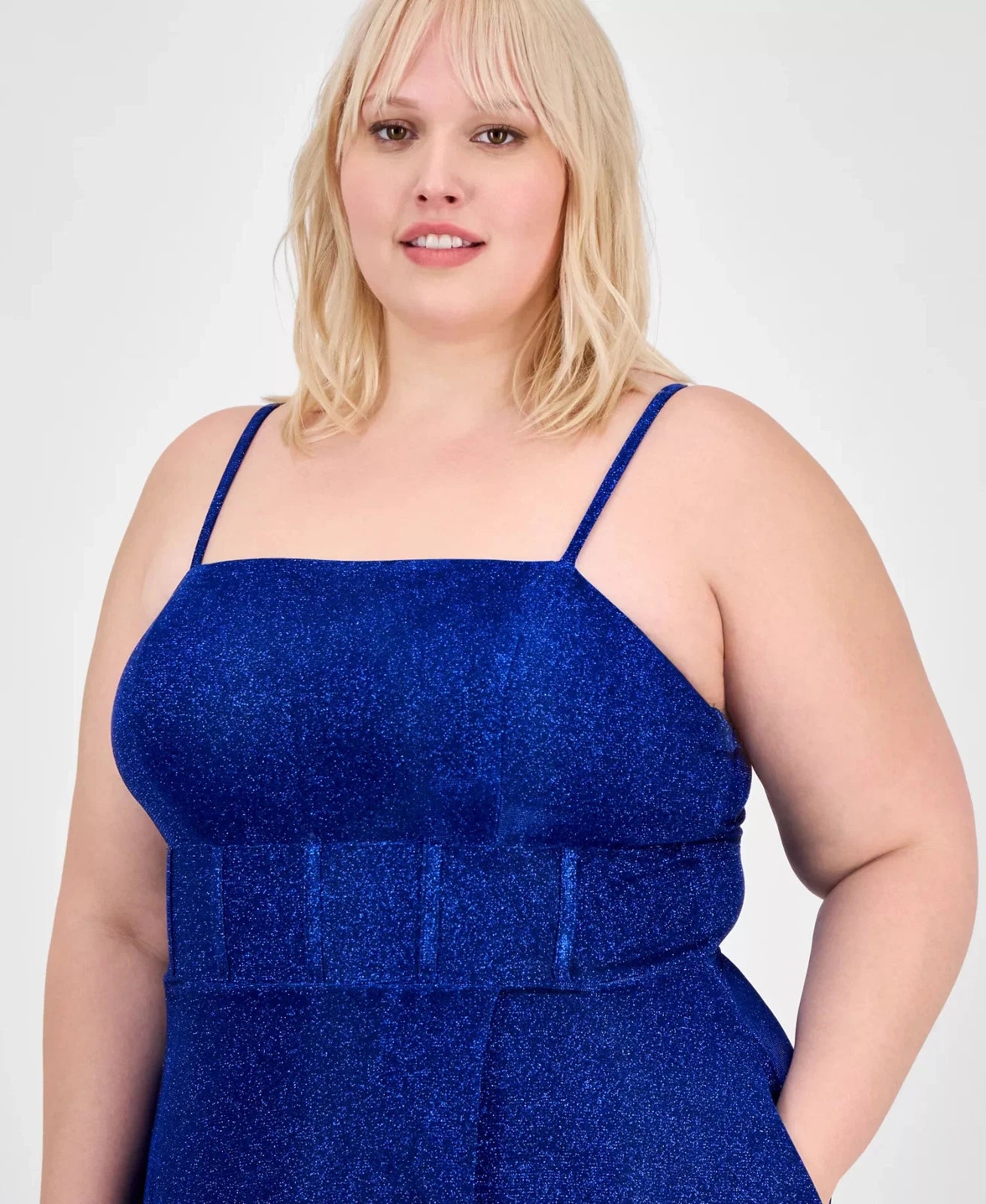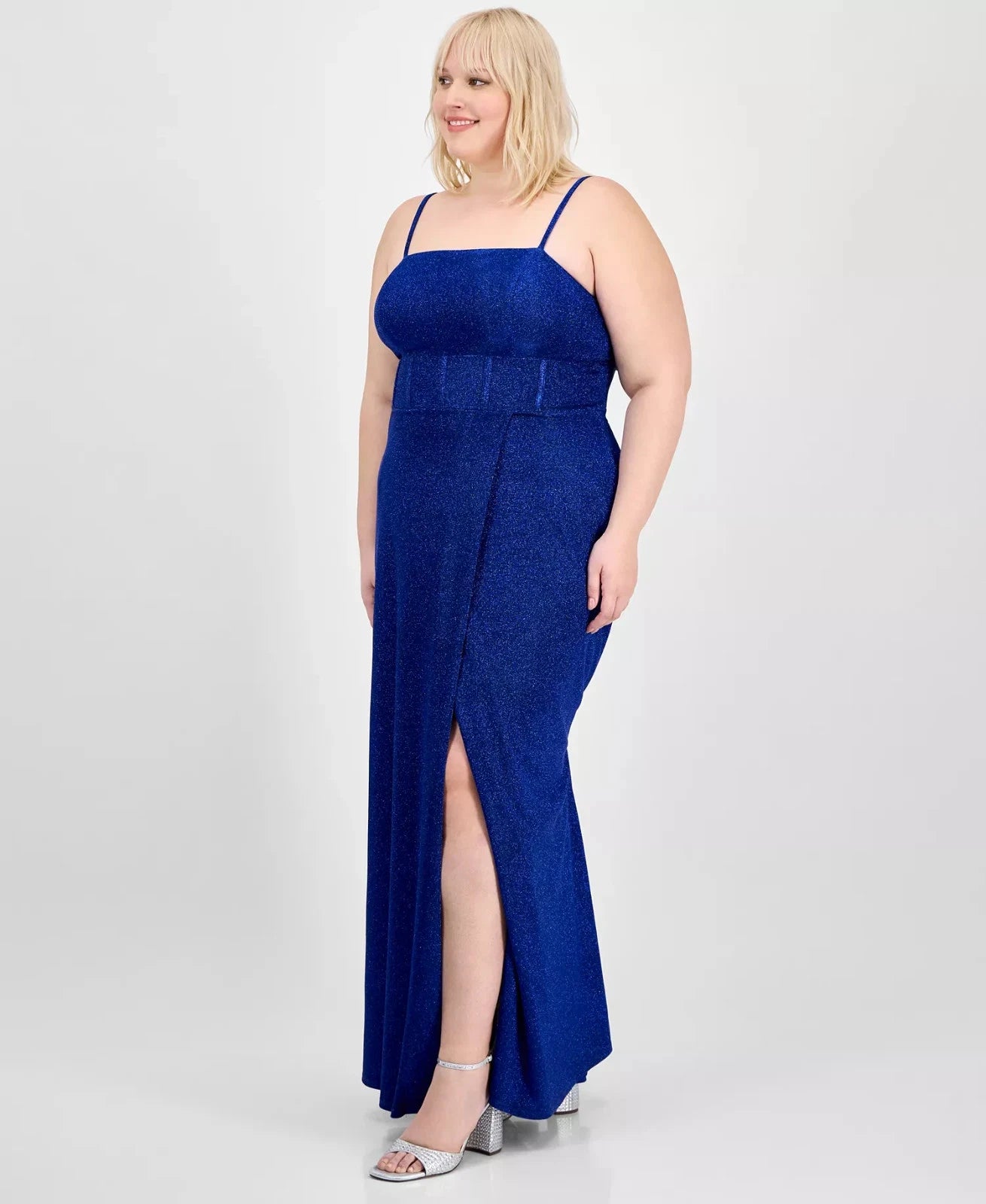 City Studios Trendy Plus Size 16W Glitter Sleeveless Gown Blue MSRP $149