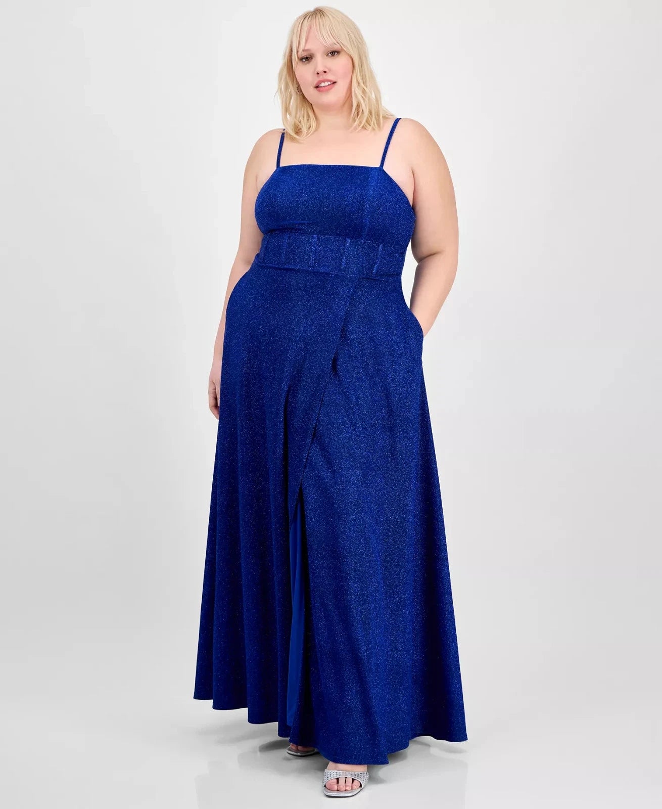 Dazzle at your next event in City Studios' plus size gown, a glamourous glittering design with handy hidden pockets at the sides.