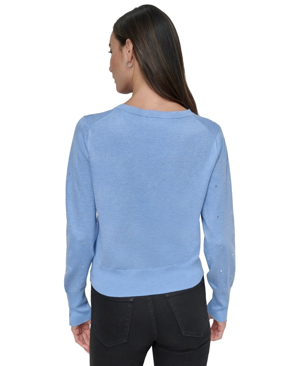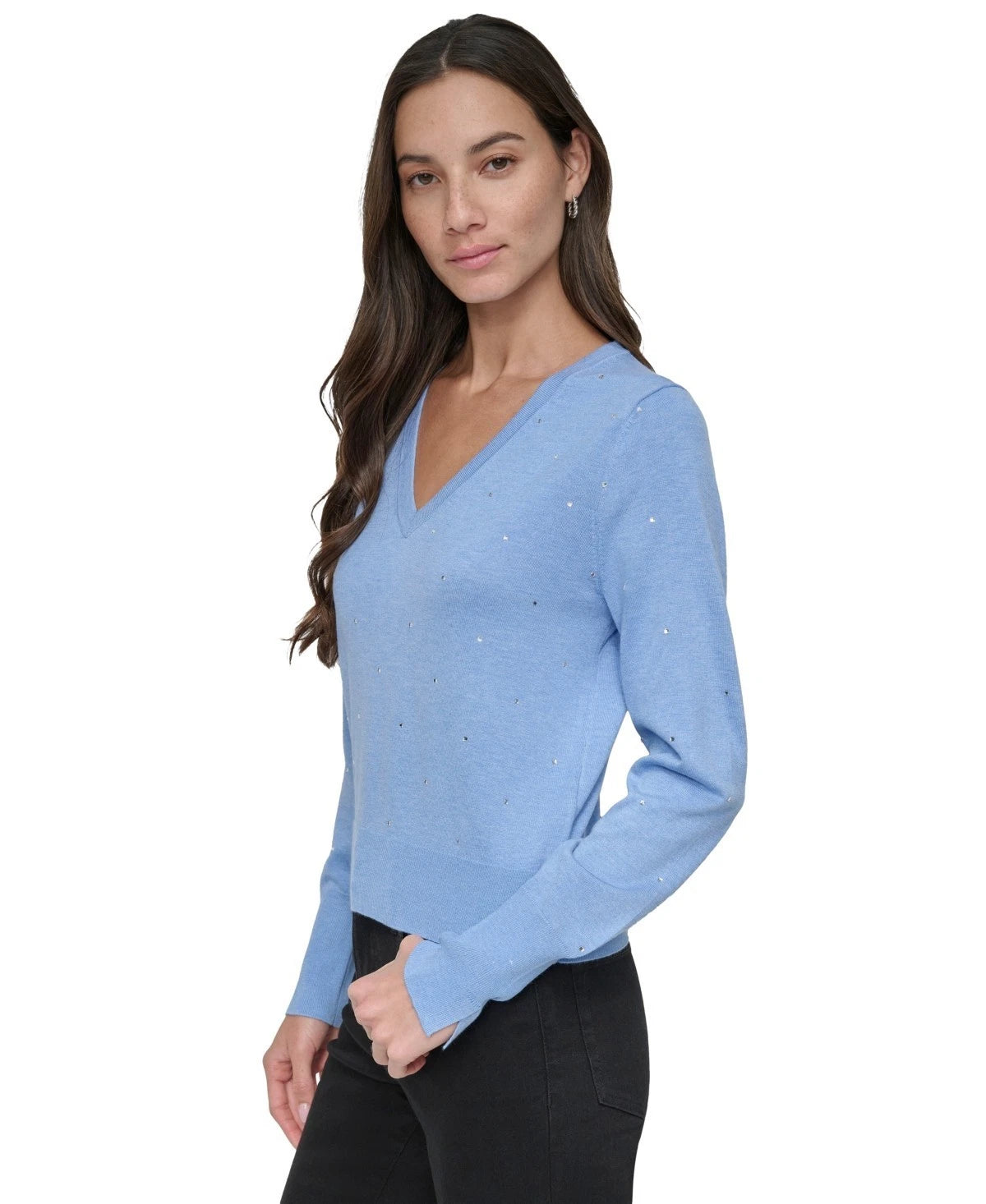 DKNY Jeans Women's Studded V-Neck Sweater Blue Size M MSRP $79