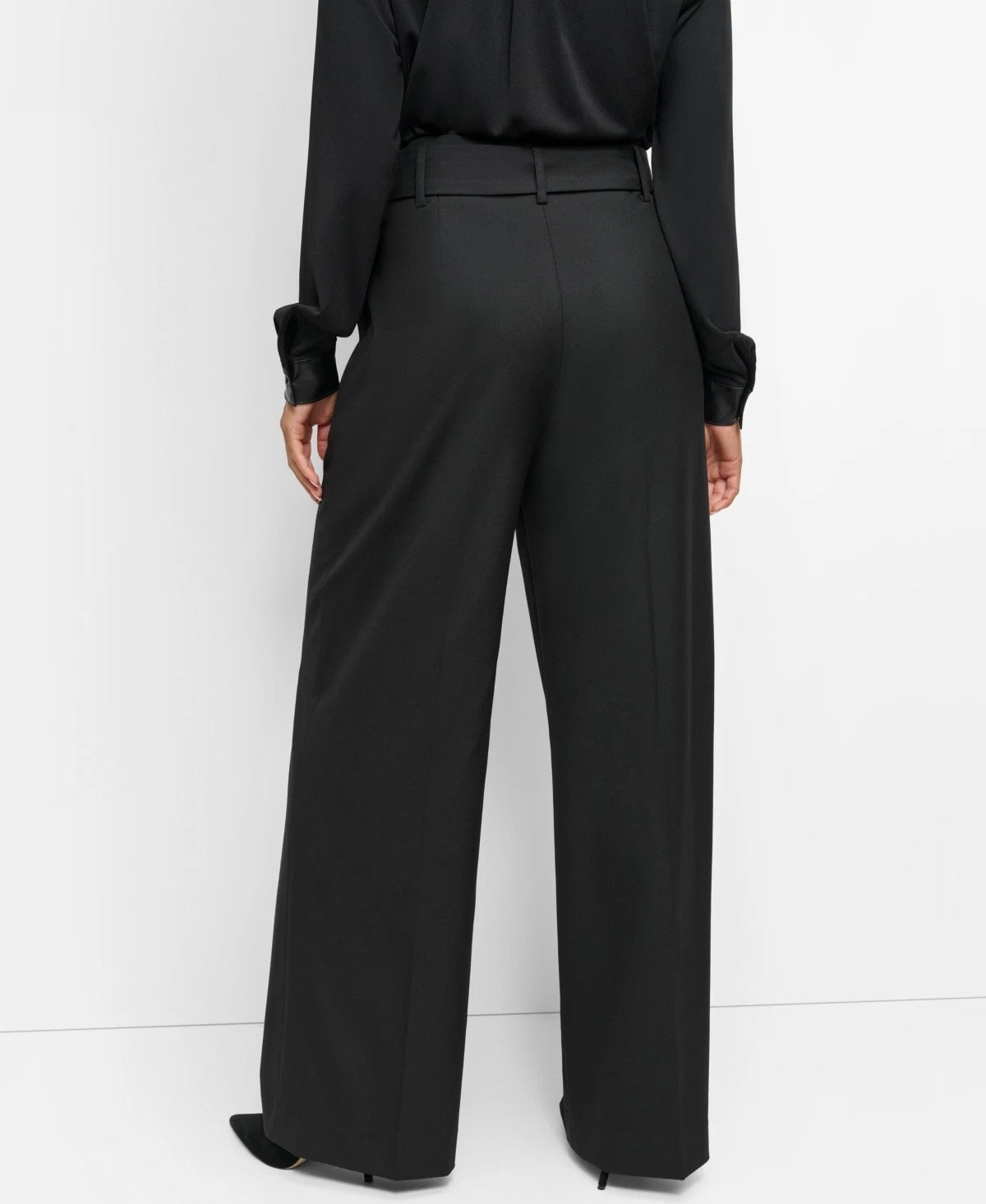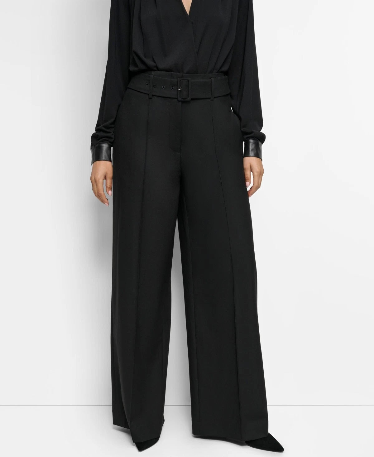 DKNY Women's Belted Mid-Rise Wide-Leg Pants Black Size 14 MSRP $129