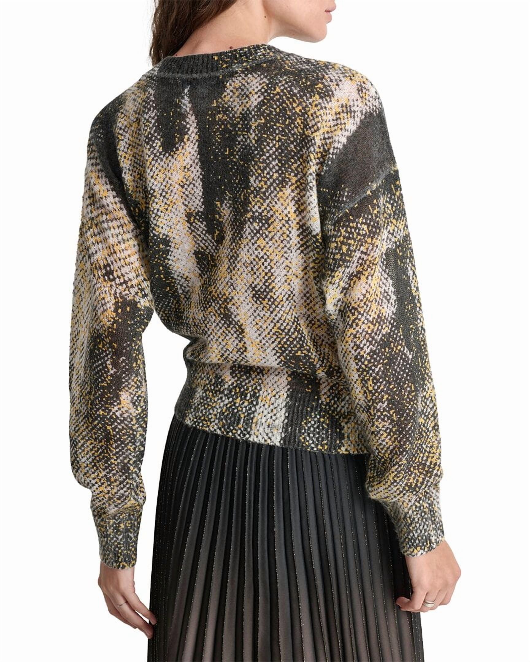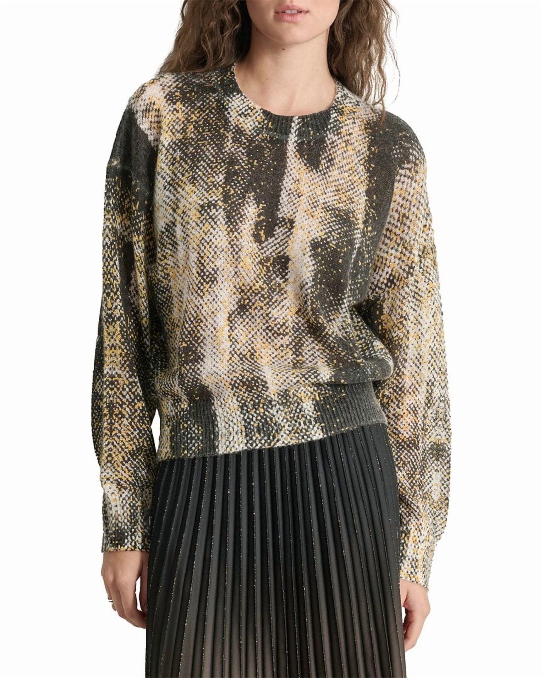 DKNY womens Brushed Printed Mohair-Blend Sweater, Size M Black Ivory MSRP $179