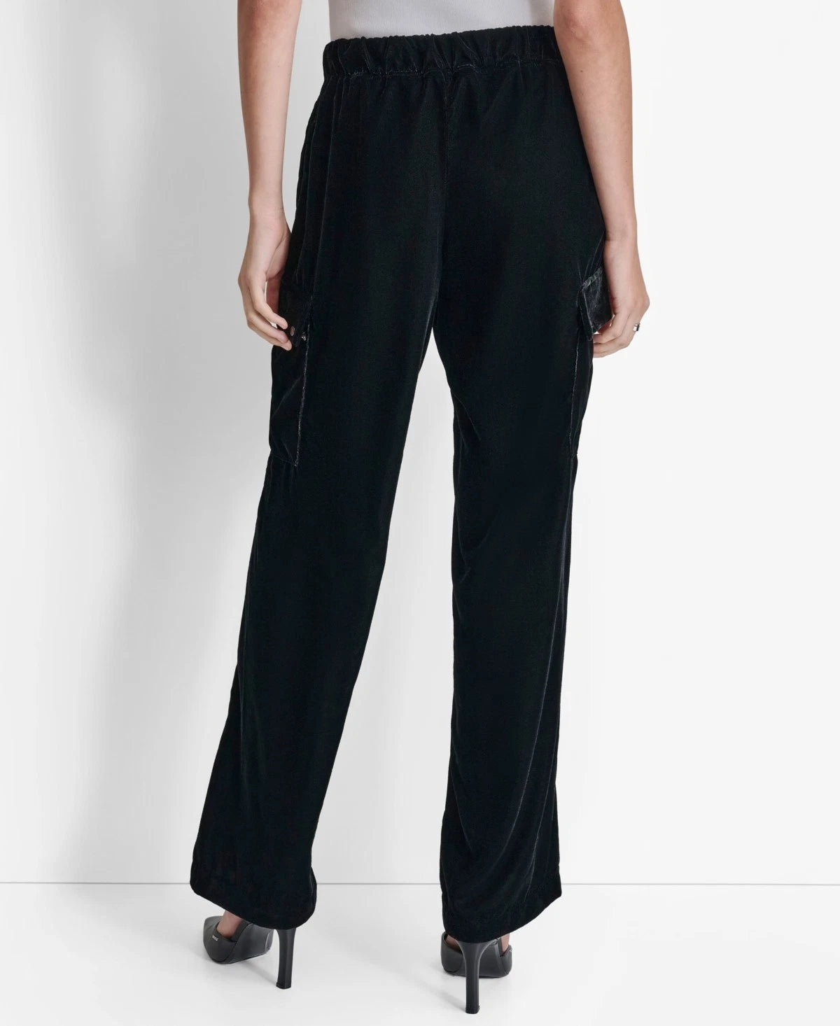 DKNY Women's High-Rise Wide-Leg Velvet Cargo Pants Black Size XL MSRP $109
