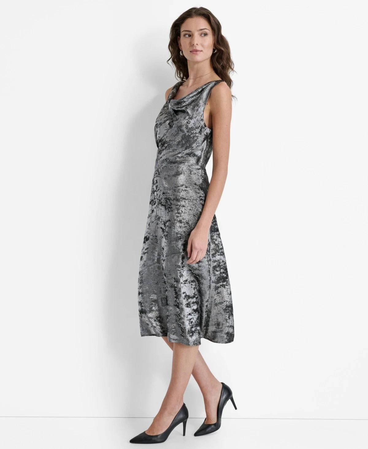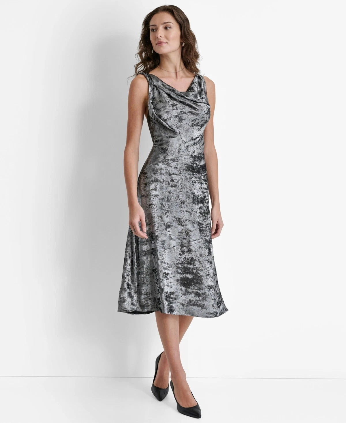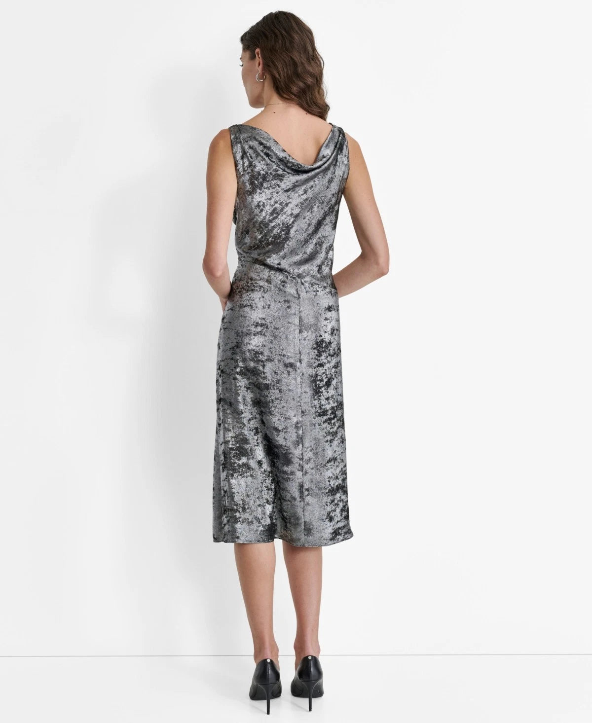 DKNY Women's Liquid Velvet Cowl-Neck Sleeveless Dress Silver Size 10 MSRP $149