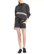 A tropical remix and racerback design bring breathable mobility to this sports bra from DKNY Sport. Removable cups and a striped hem enhance the medium-impact support.