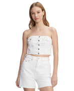 Vertical seaming with pleat details lend a structured and flattering shape to this sleeveless button-front blouse from DKNY.