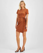 Vertical seaming with pleat details lend a structured and flattering shape to this sleeveless button-front blouse from DKNY.