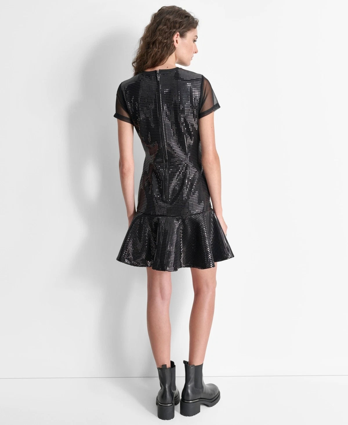 DKNY Women's Sequin Ruffled-Hem Mini Dress Black Size 8 MSRP $199