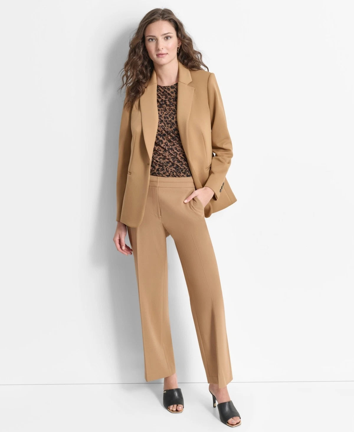 DKNY Women's Single-Button Padded-Shoulder Blazer Brown Size 0 MSRP $149