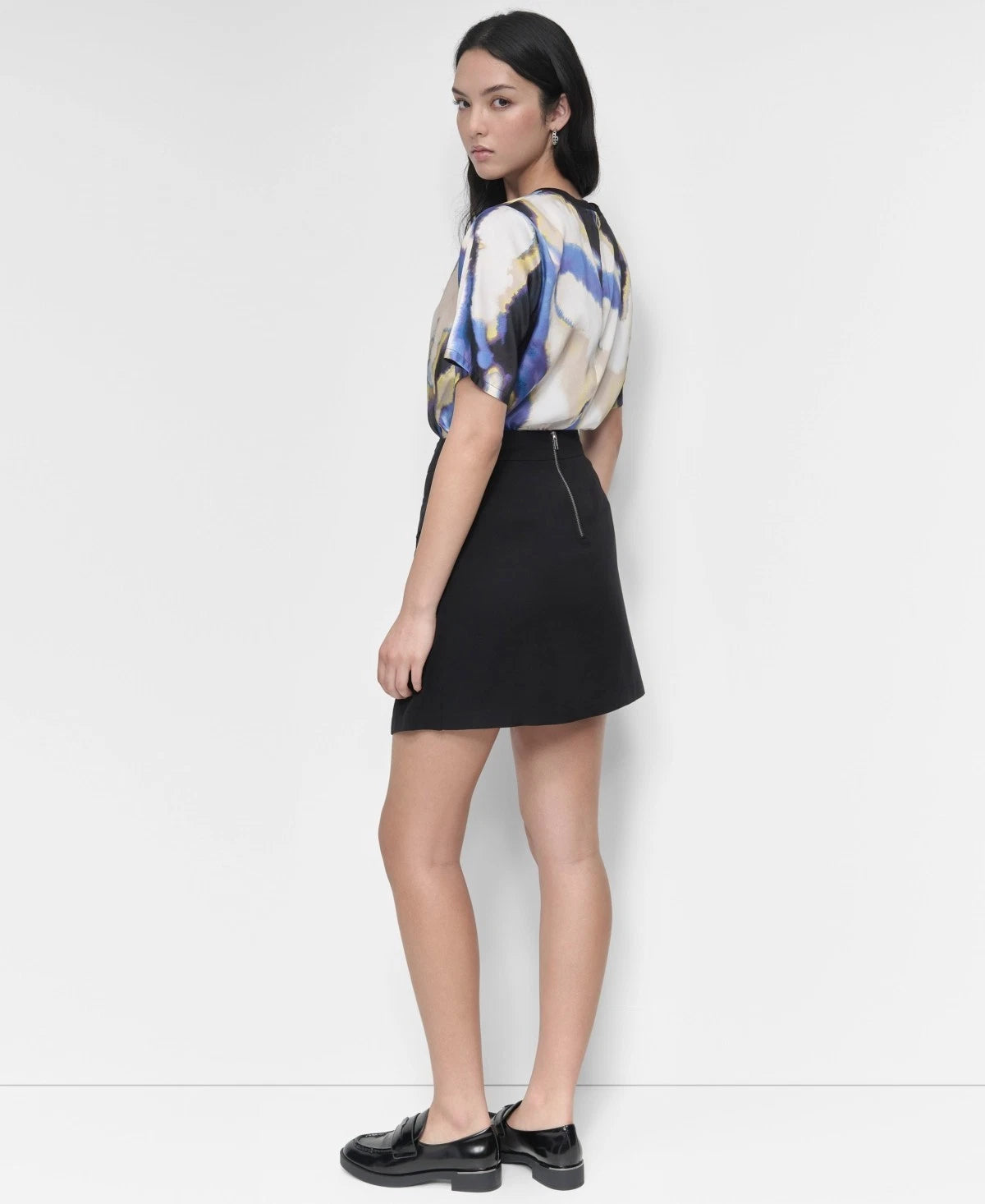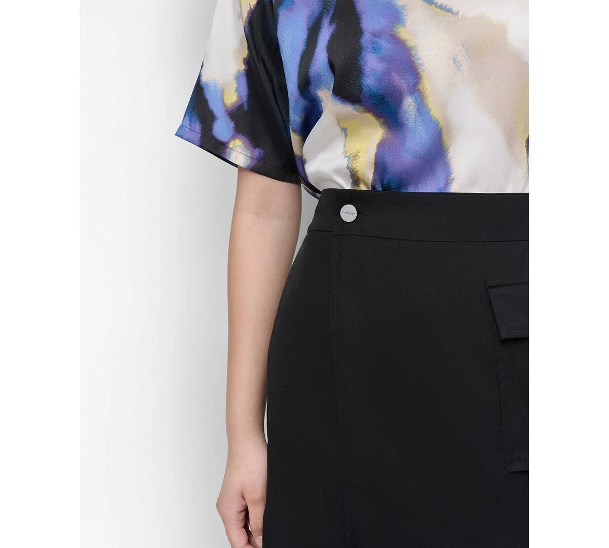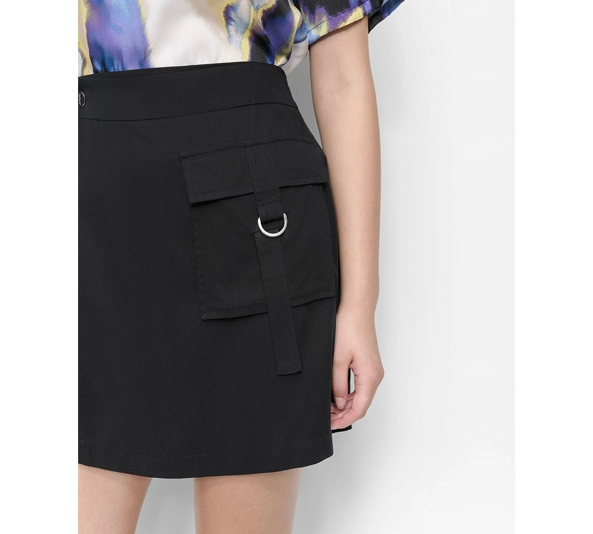 DKNY combines a sleek mini style with casual cargo features for a career look that encapsulates elevated utility.
