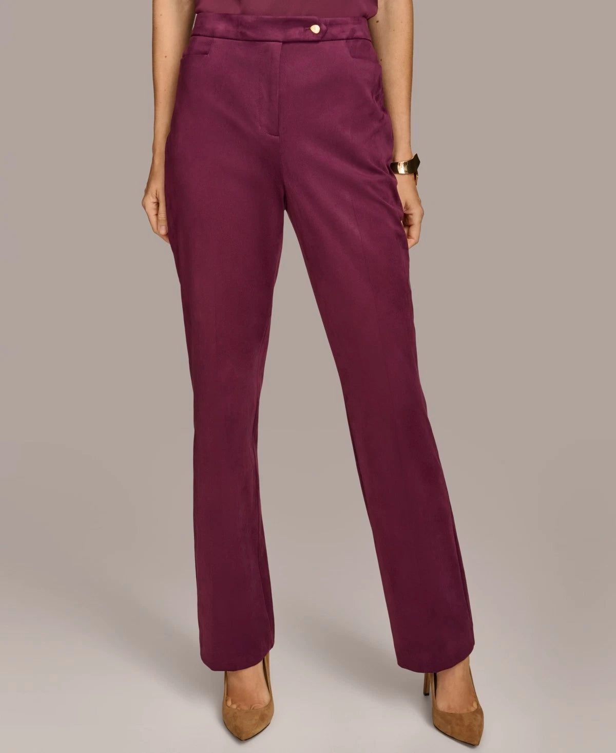 Donna Karan New York Straight-Leg Faux-Suede Pants Size 16 Plum Purple MSRP $119