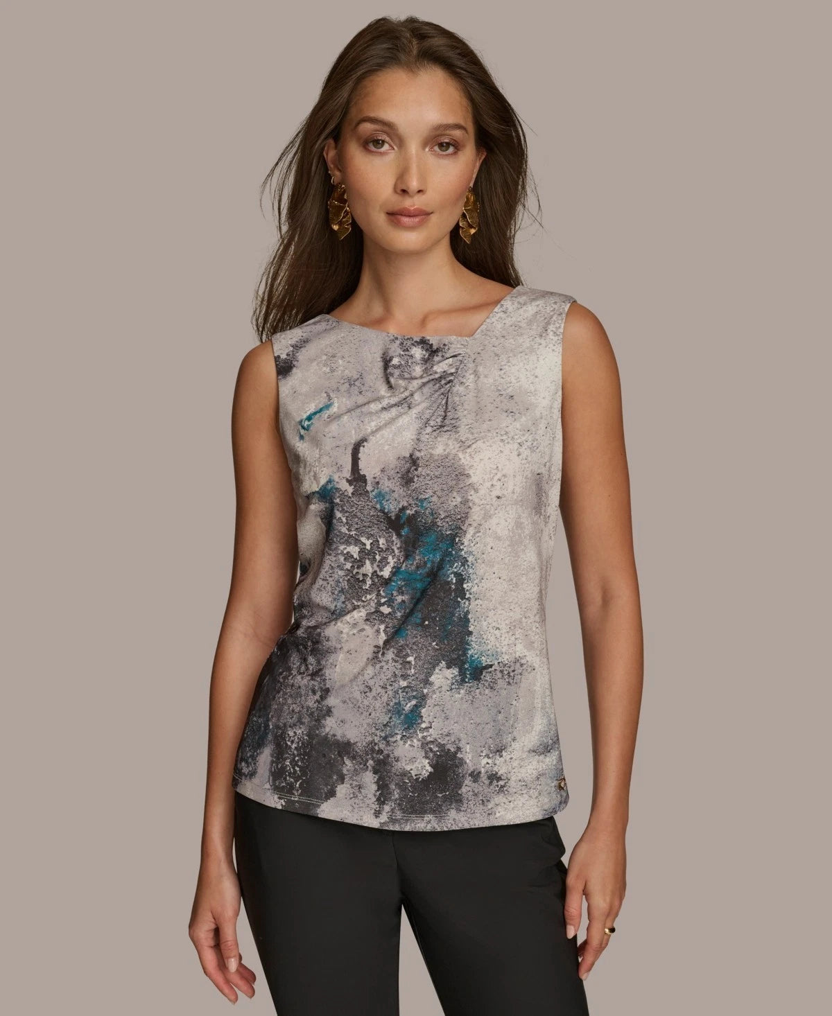 Add a touch of sophisticated style to your weekday collection with this sleeveless blouse from Donna Karan featuring a flattering asymmetric neckline.