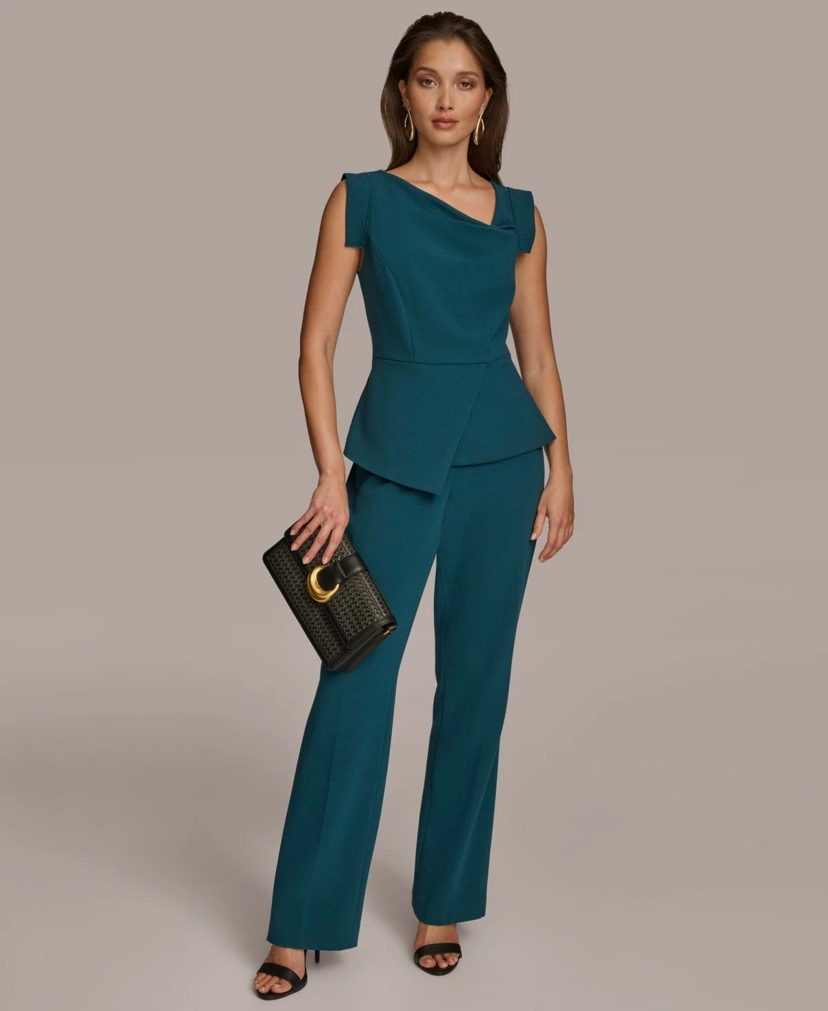 An asymmetrical neckline adds a touch of interest to this office-friendly blouse by Donna Karan. Wear alone or pair with the matching suit to complete your ensemble.