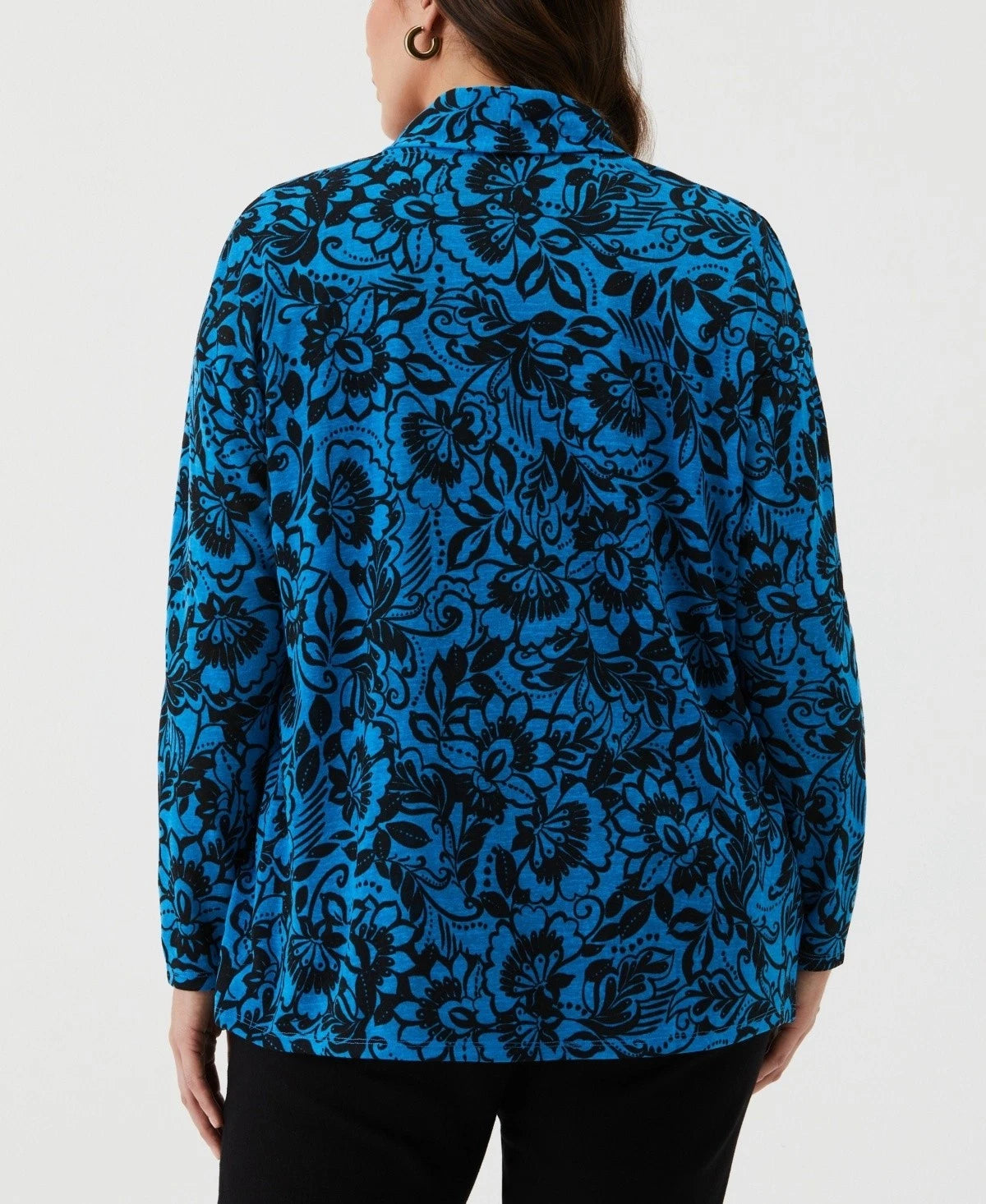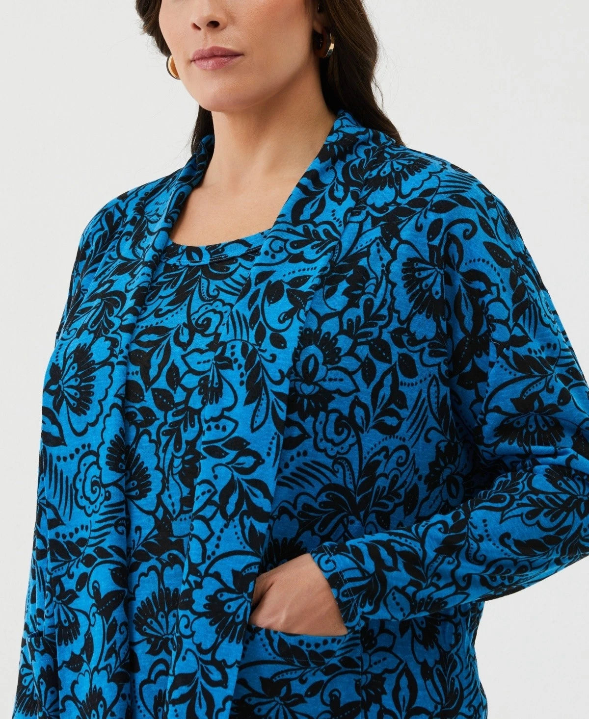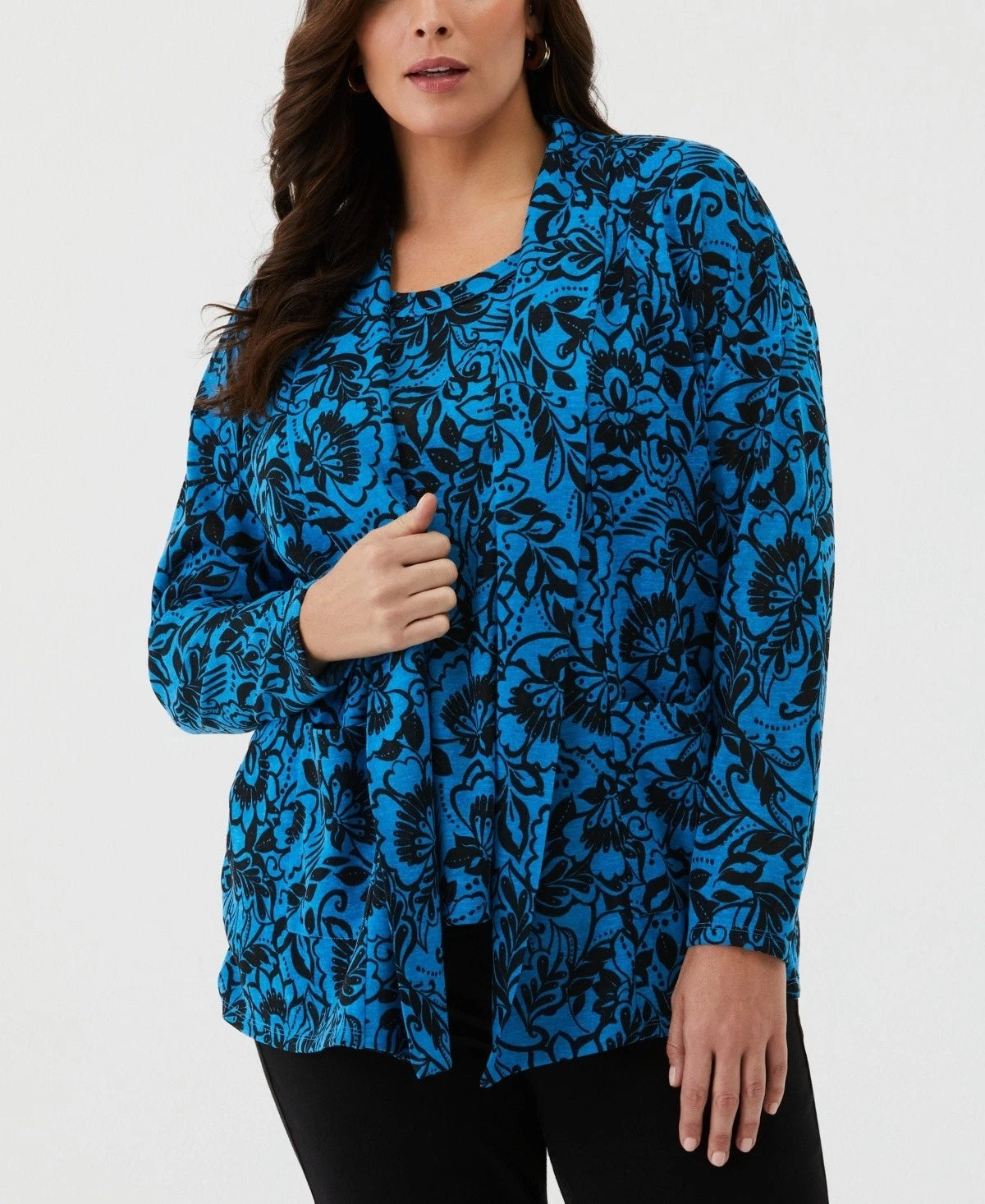 ELLA Rafaella Plus Size 1X Blue Eco Floral Print Roll Collar Draped Cardigan $89
