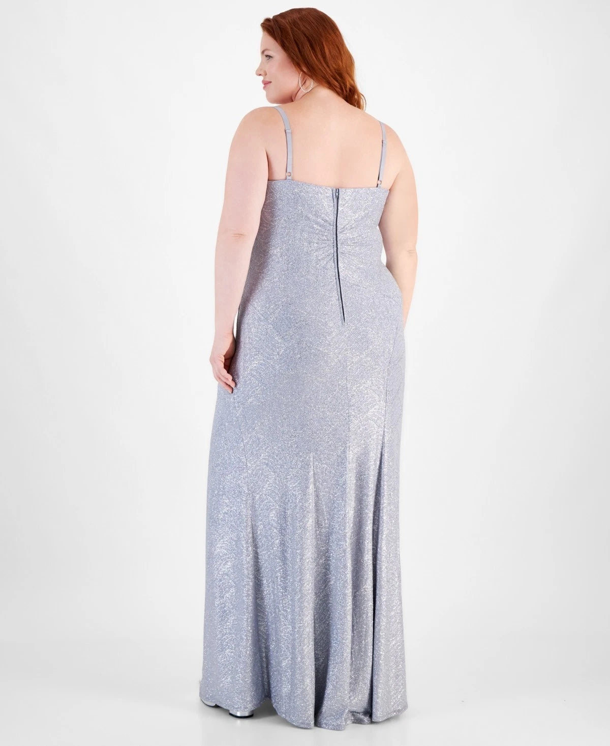 Emerald Sundae Trendy Plus Size 20 Draped-Sweetheart-Neck Glitter Gown Silver