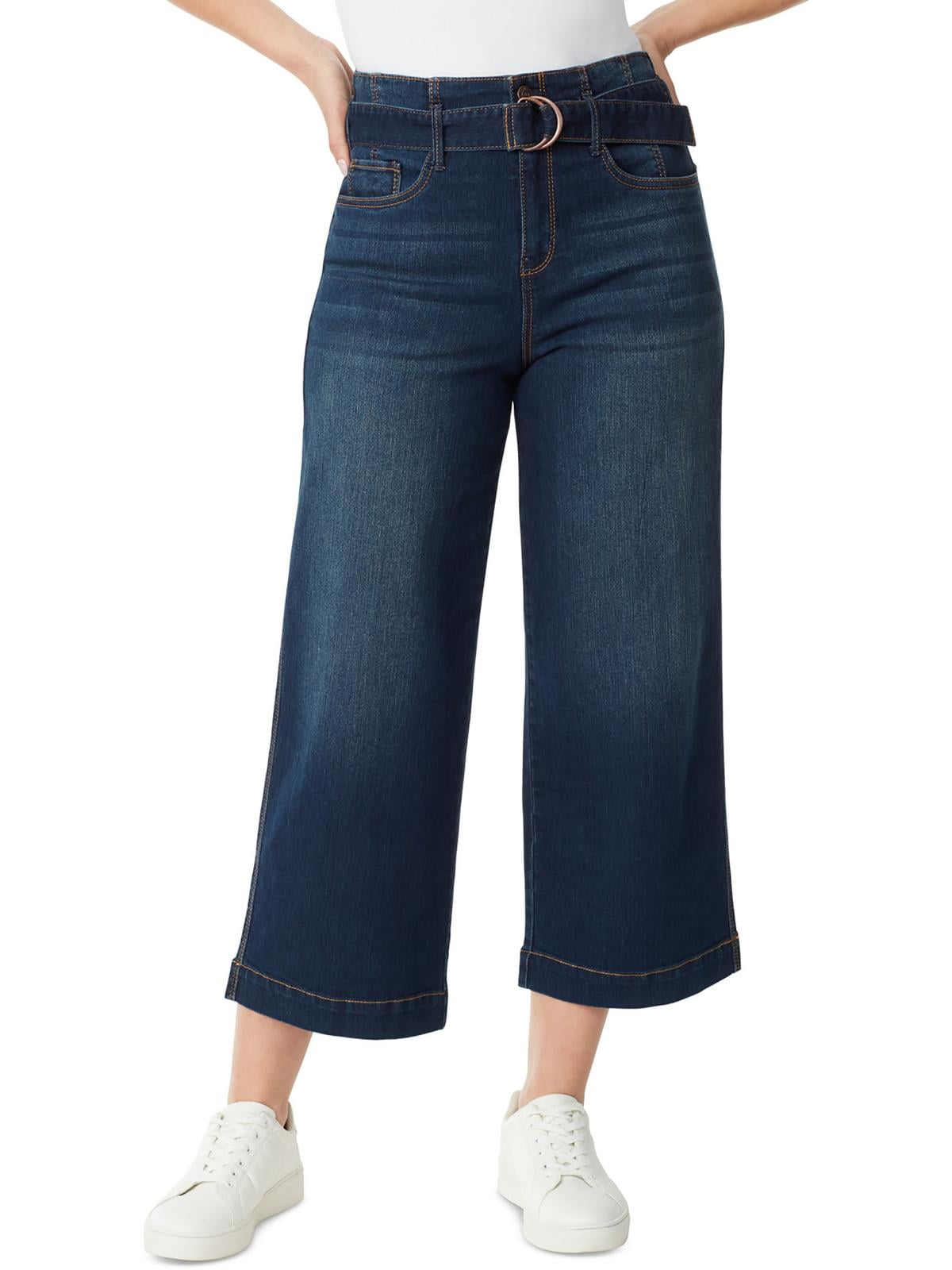 Gloria Vanderbilt Womens Belted Wide Leg Cropped Jeans Blue Size 16
